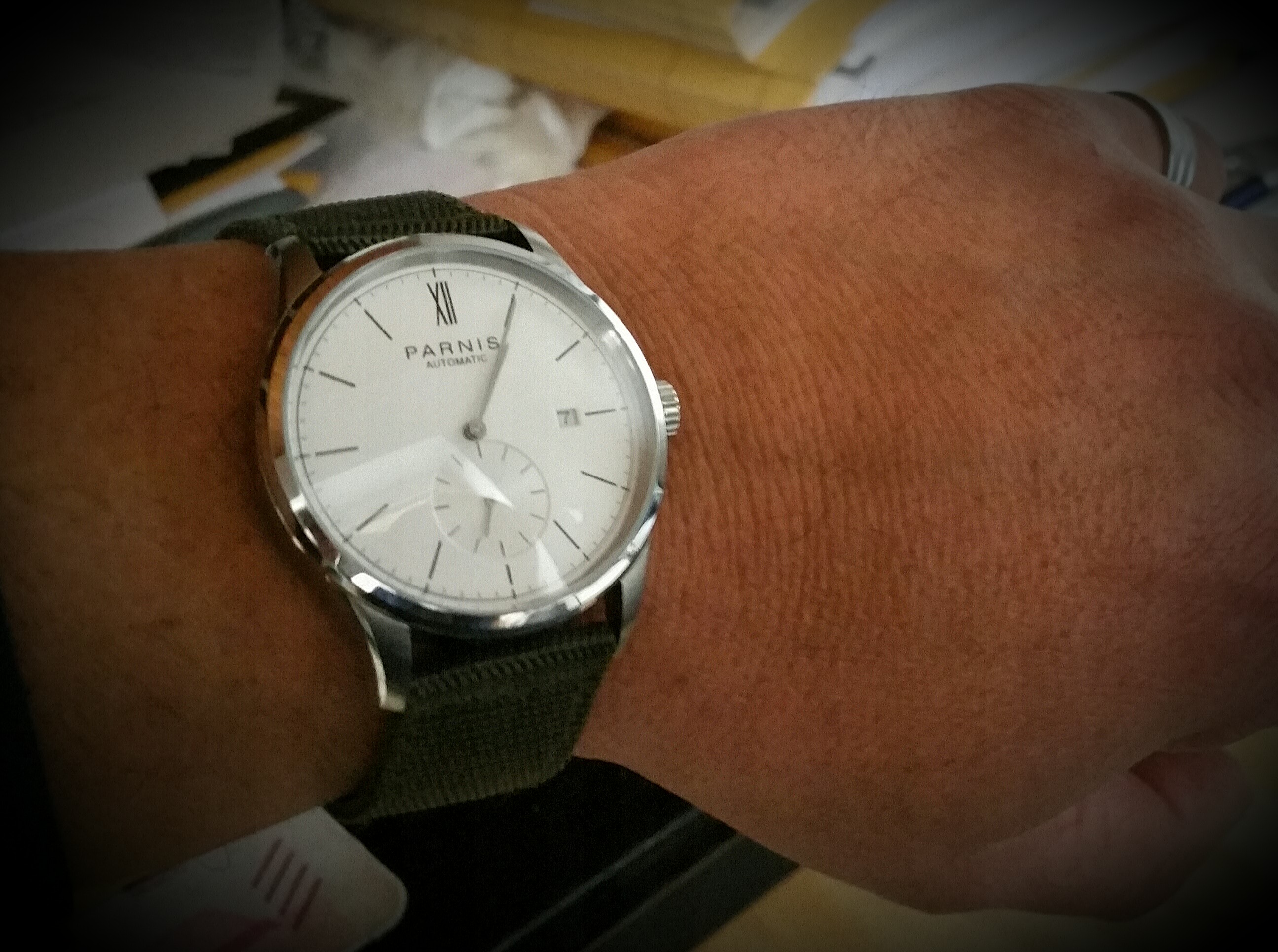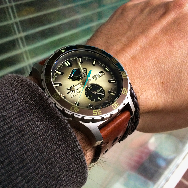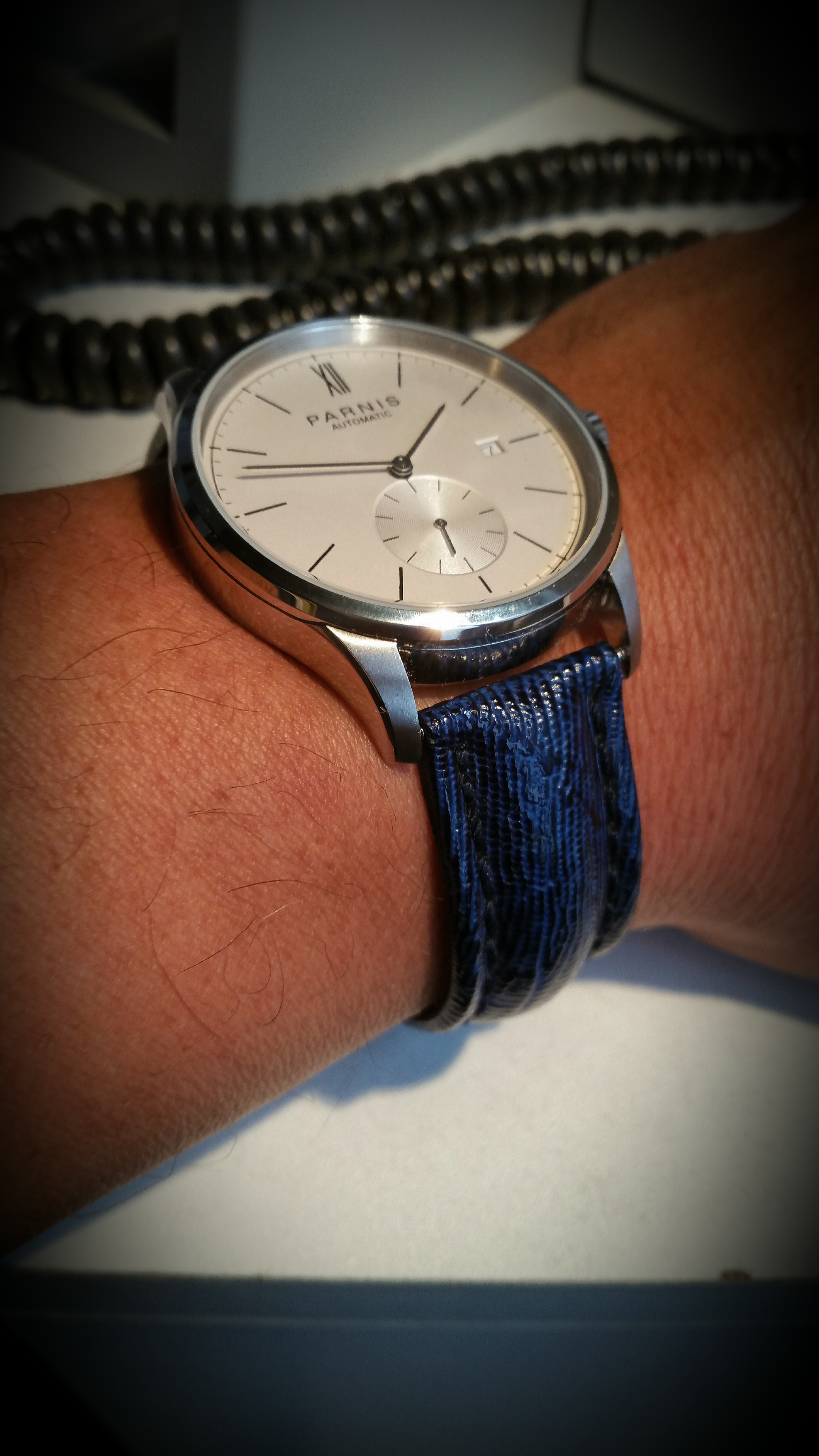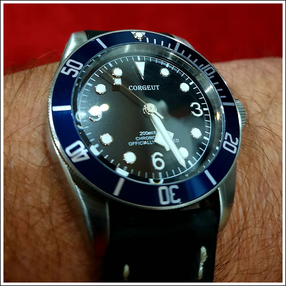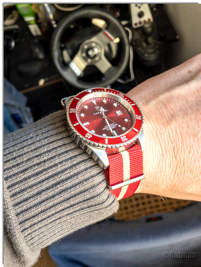 Hm... Zumindest auf diesem Foto finde ich das nicht ganz so stimmig. Irgendwie beisst sich die Farbe des Bands mit der Farbe vom Zifferblatt. Ist aber nur meine persönliche Meinung. Die Uhr finde ich nach wie vor geil!