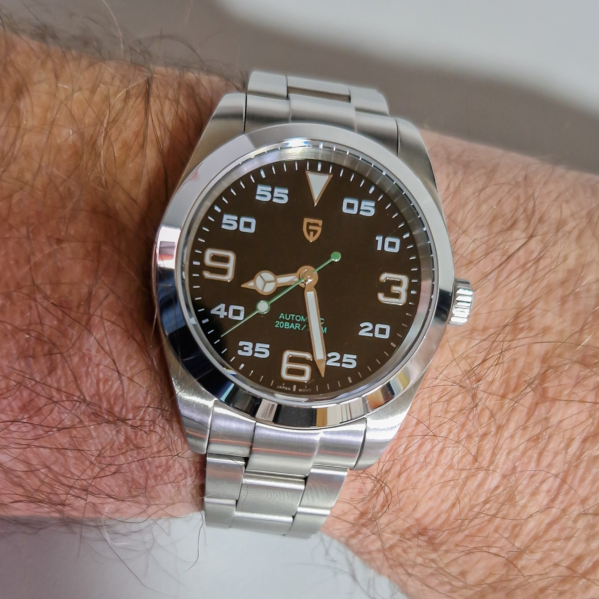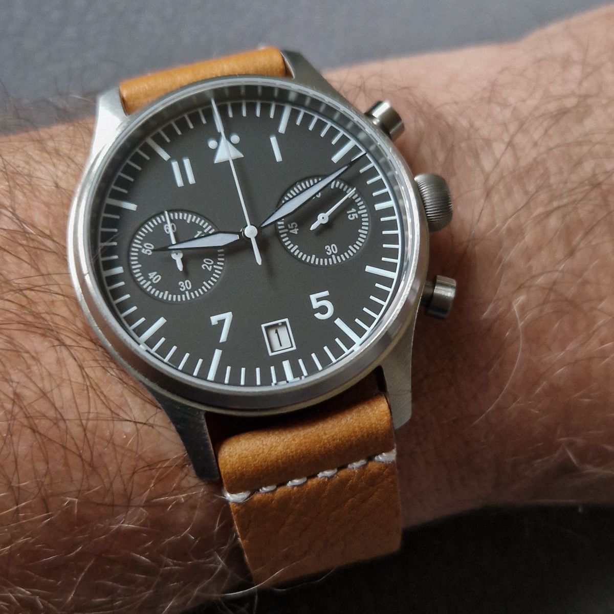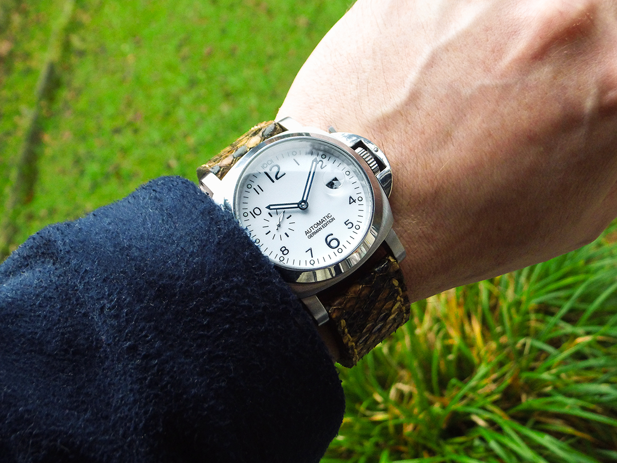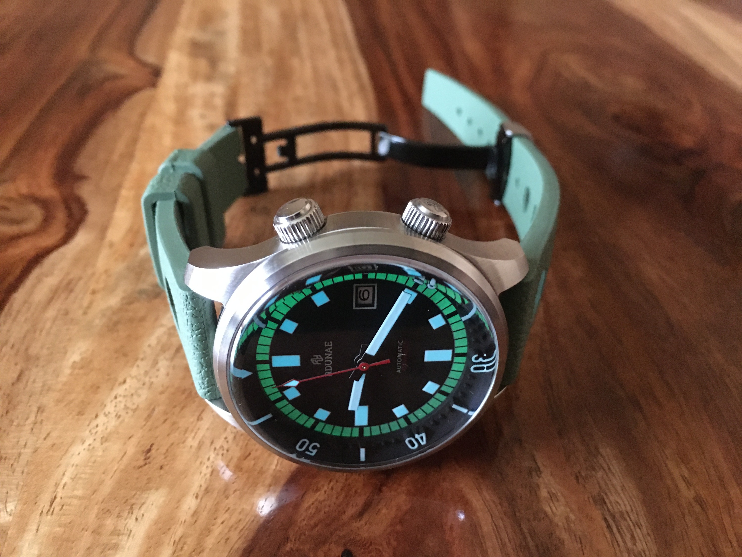 beim Design haben die wohl ein wenig bei der Spinnaker Bradner abgeguckt. Besonders die innenliegende, drehbare Lünette und die beiden Kronen ähneln sich doch sehr. Trotzdem recht eigenständig, finde ich. Nur mit dem unaussprechlichen Namen kann ich mich immer noch nicht anfreunden