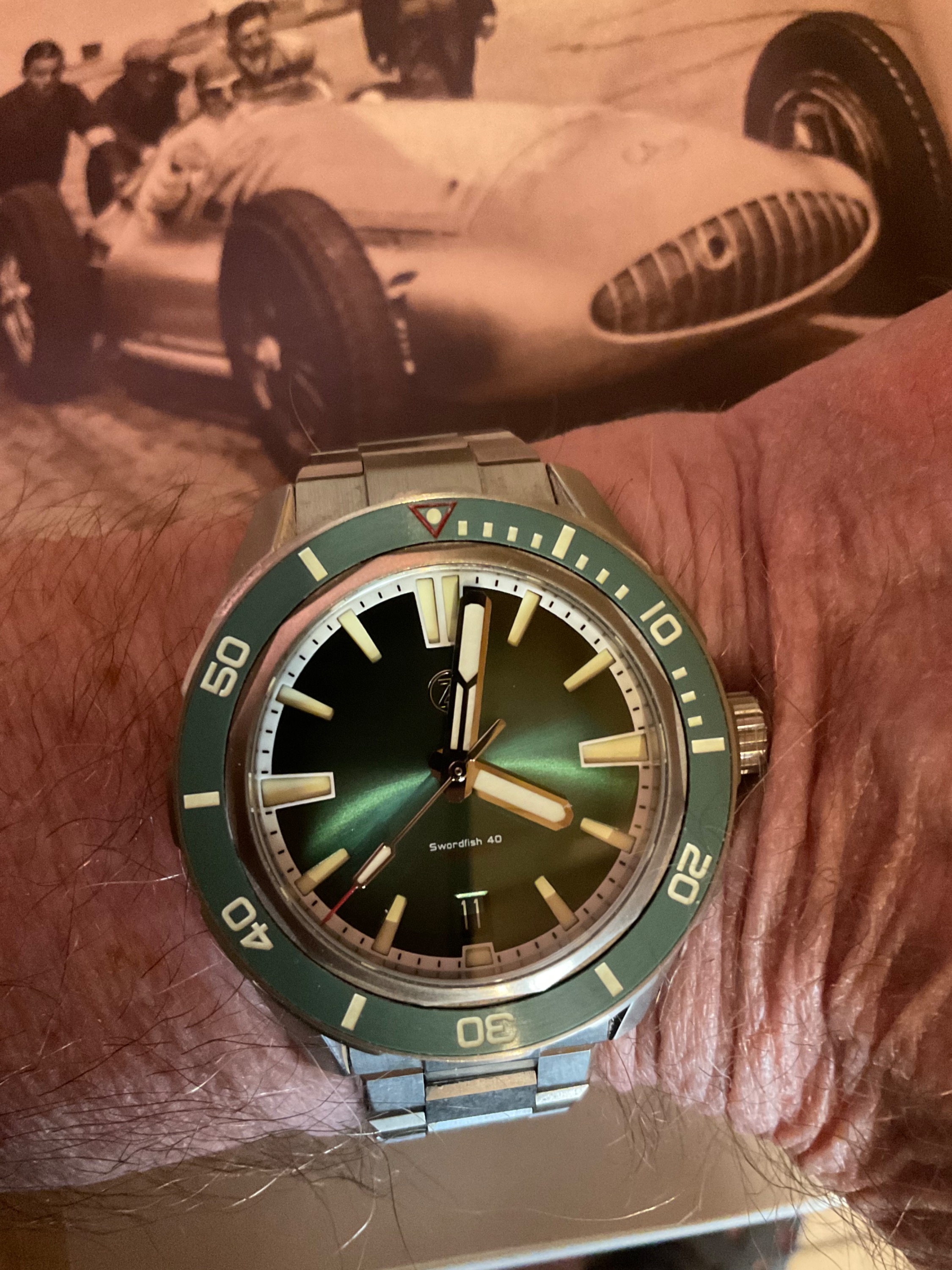 Die C70 Uhr wird ja vom „British Racing Green“ bestimmt, die Farbe der Rennfahrzeuge, der Briten.