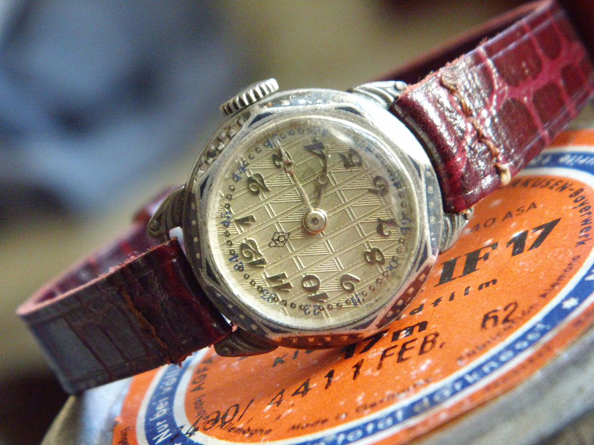Auf einer polnischen Seite (allegro.pl) habe ich eine 'Orféon' mit sehr ähnlichem oder identischem Zifferblatt gefunden. Das Gehäuse ist anders (deins ist schöner! Silber?).