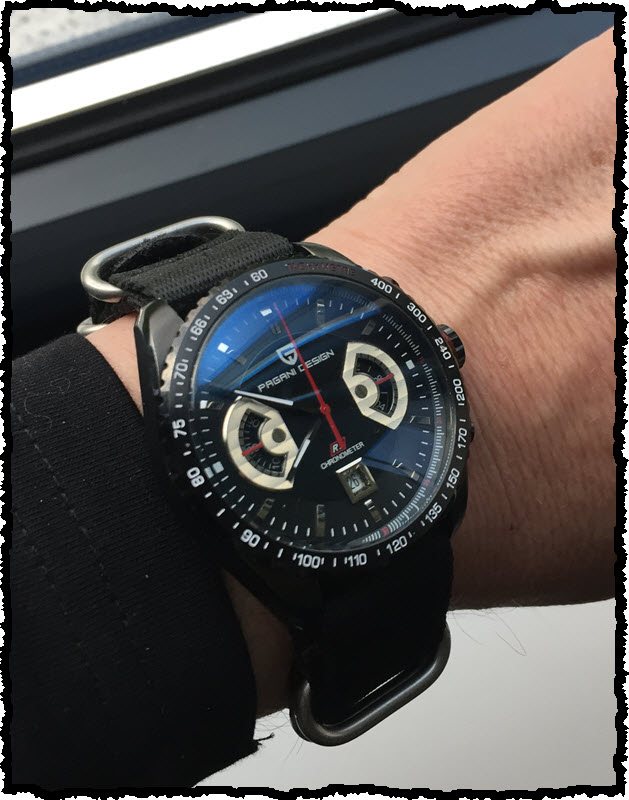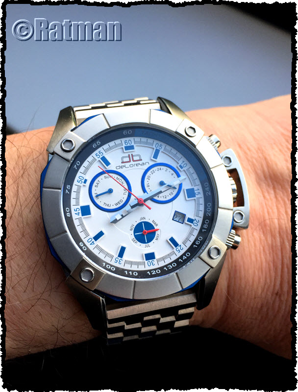 Die 54,3mm sind allerdings inklusive Krone. Aber selbst ohne Krone gemessen dürfte das Teil einen Durchmesser von um die 48mm aufweisen, ist also schon ein ordentlicher Klopper. Dazu passt dann auch die Dicke von über anderthalb Zentimetern. Die spielt also in einer Liga mit meinen Invicta Grand Divers.
