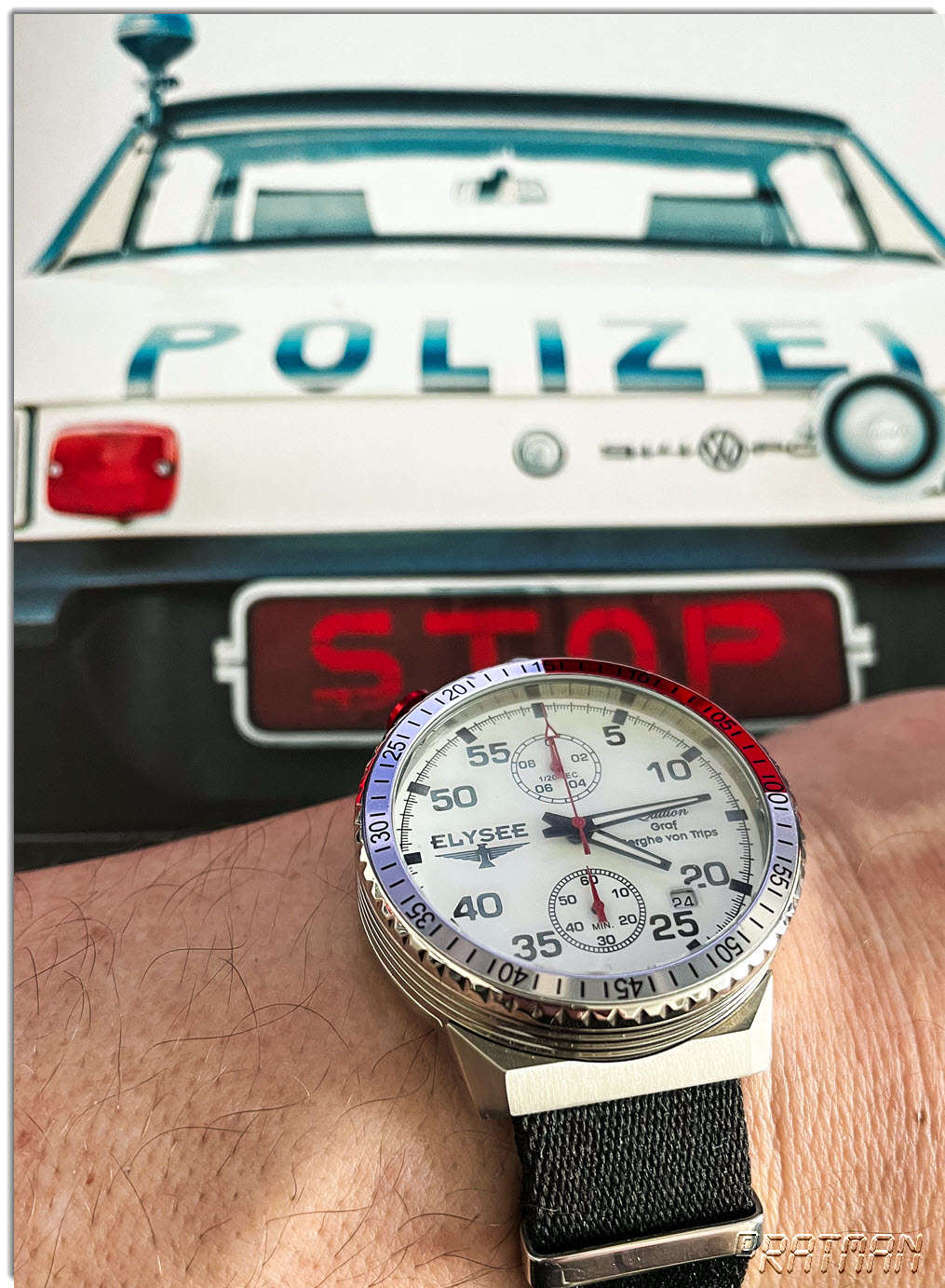 Schöner als die Pozilei erlaubt: ELYSEE Rally Timer "Graf Berghe von Trips Edition" Ref. 80516 + Seatbelt-Nato von Cheapest Nato Straps