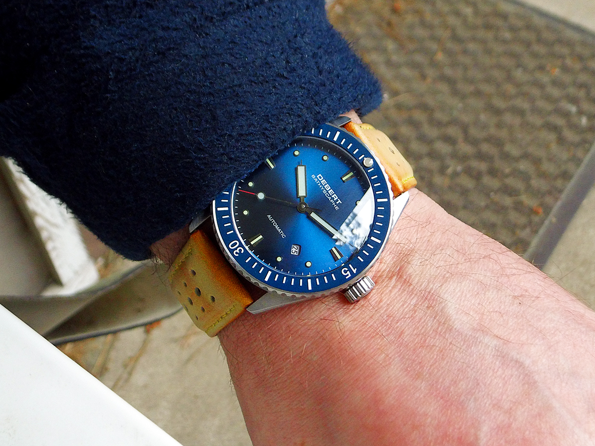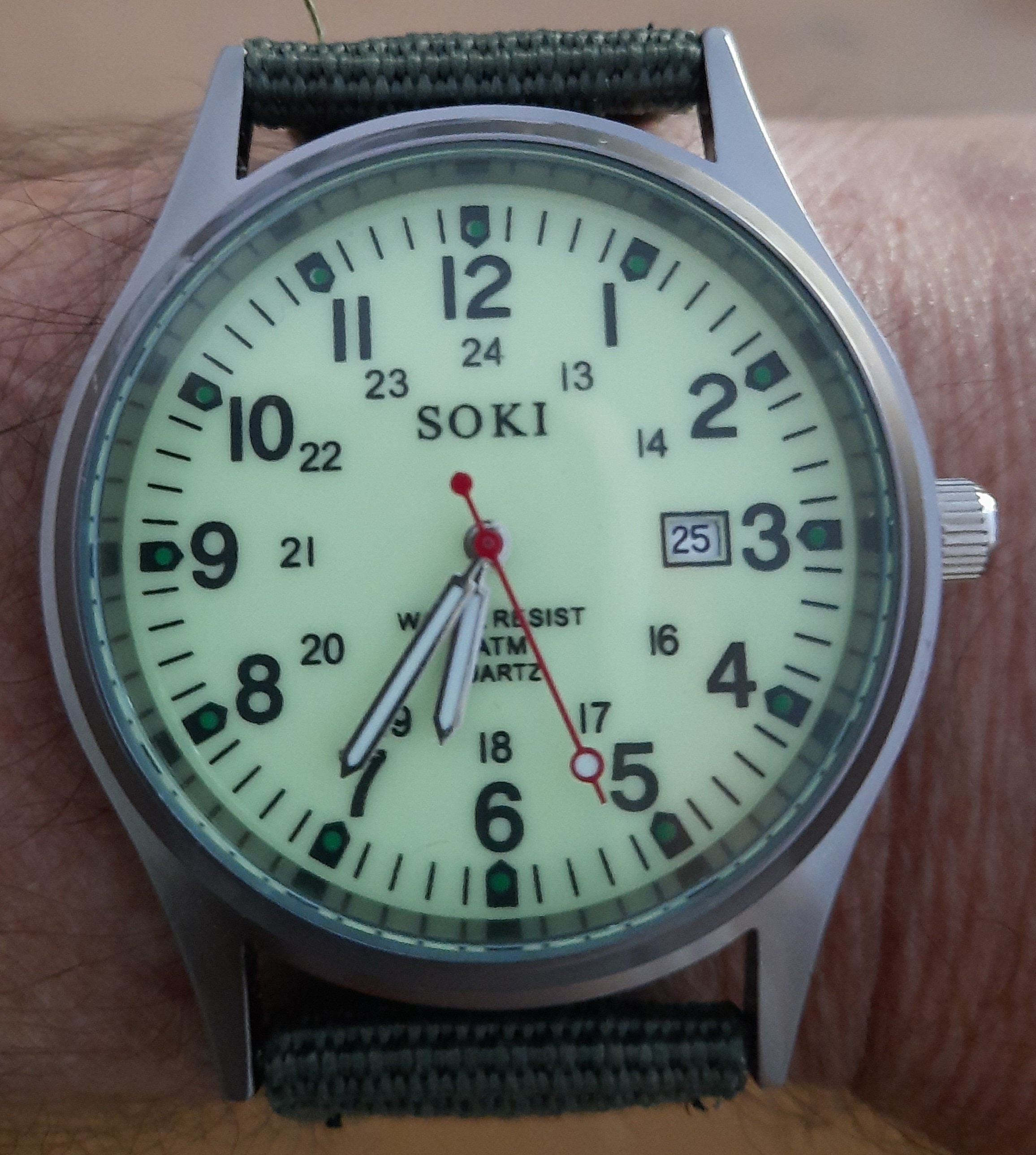 Die Lünette ist drehbar und die Leuchtzeiger leuchten auch heute noch.
