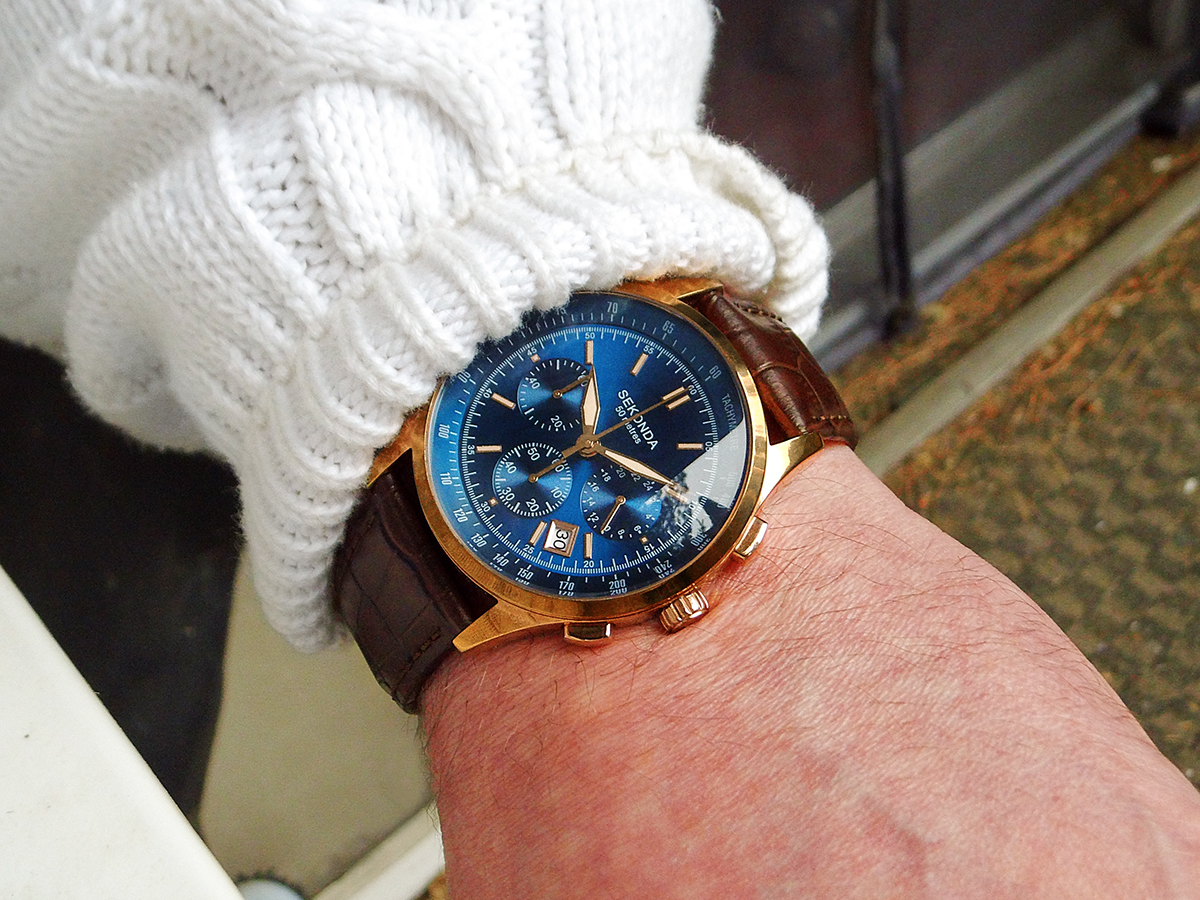 Ist die mechanisch, mit Poljot 3133? Zumindest früher war 'Sekonda' ja eine Exportmarke der russischen Uhrenindustrie, wohl v.a. zum Absatz im UK. Die Uhren gab es quasi baugleich als Poljot, Slava, Raketa etc...