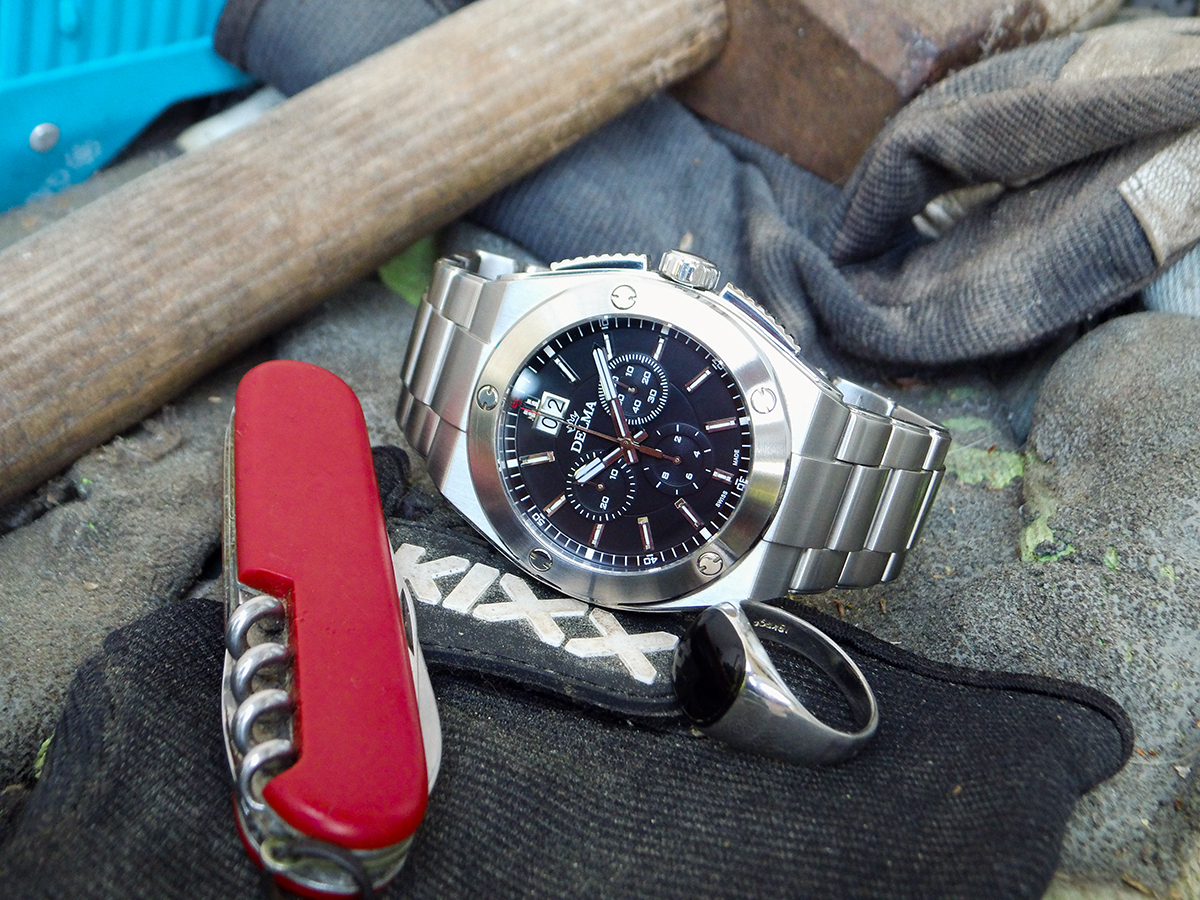Problem: Durch die Totalisatoren wird der Sekundenkreis bei der 9 und bei der 3 unterbrochen und ein weiteres Mal bei der 6 durch das Datum. In diesem Bereich darf man dann raten, was man gestoppt hat, falls man den Chrono mal benutzen will, das ist Design nach dem Motto 'form doesn't care a shit about function'.