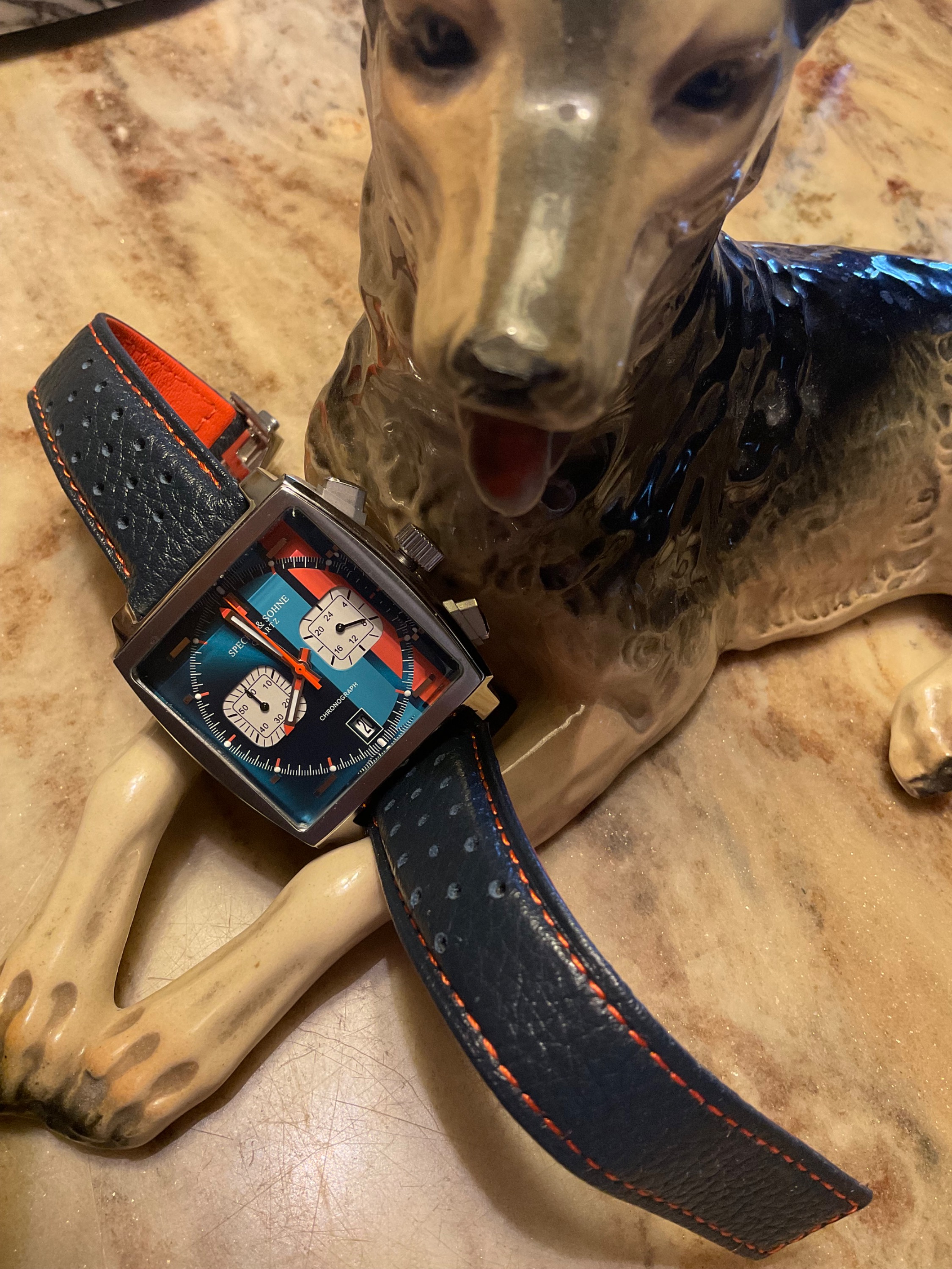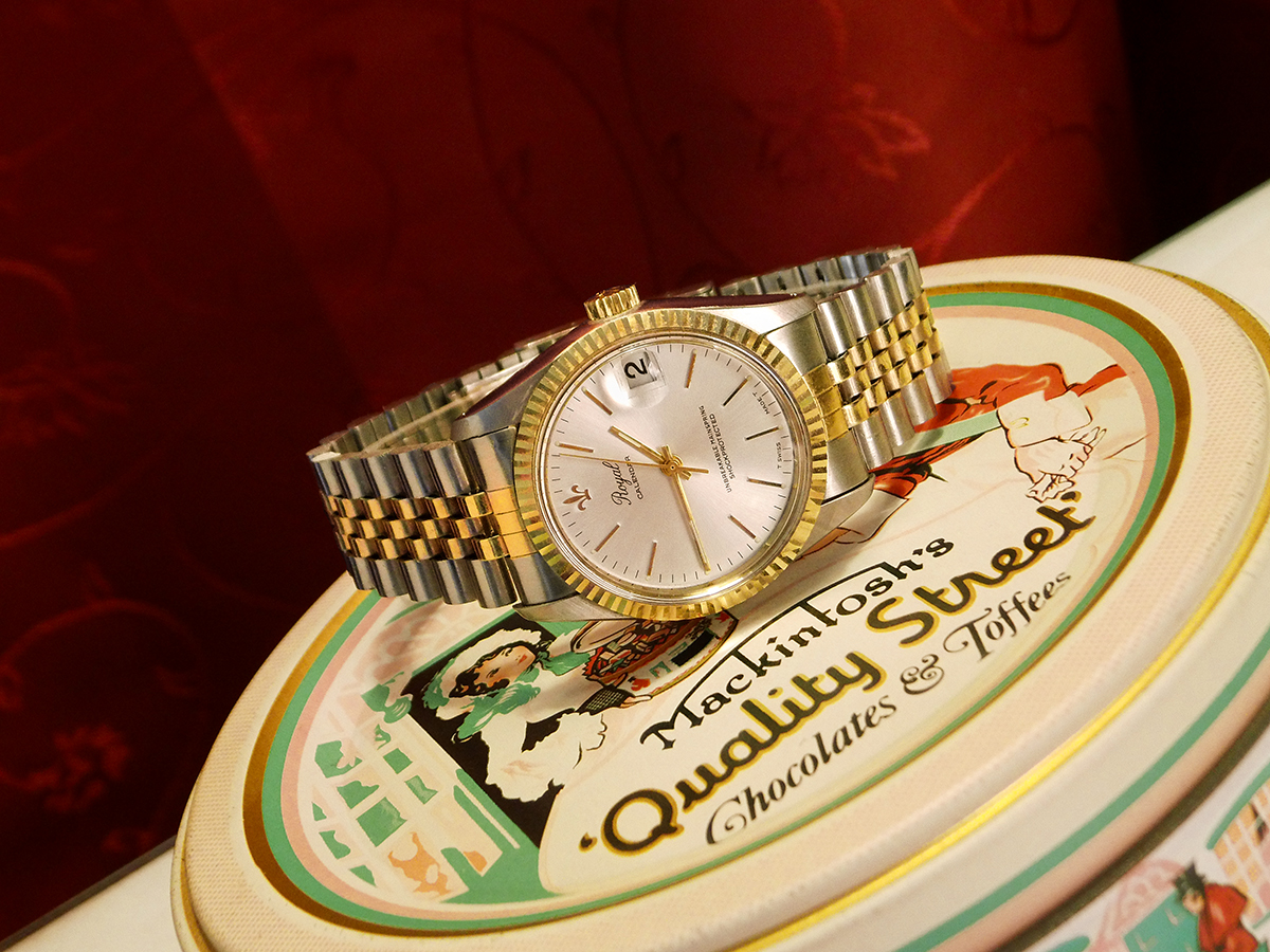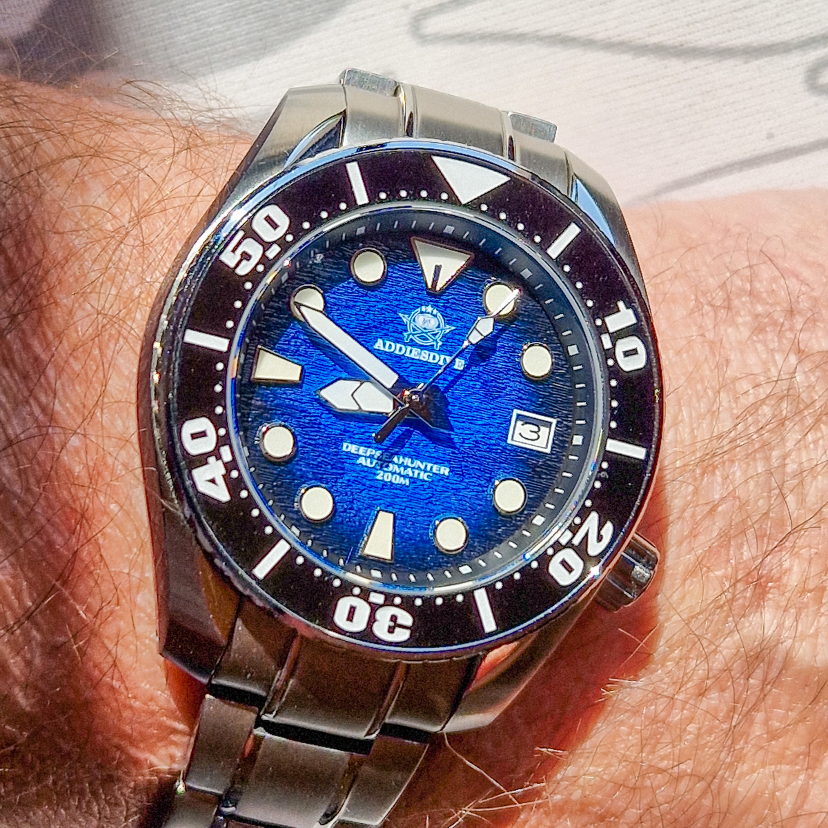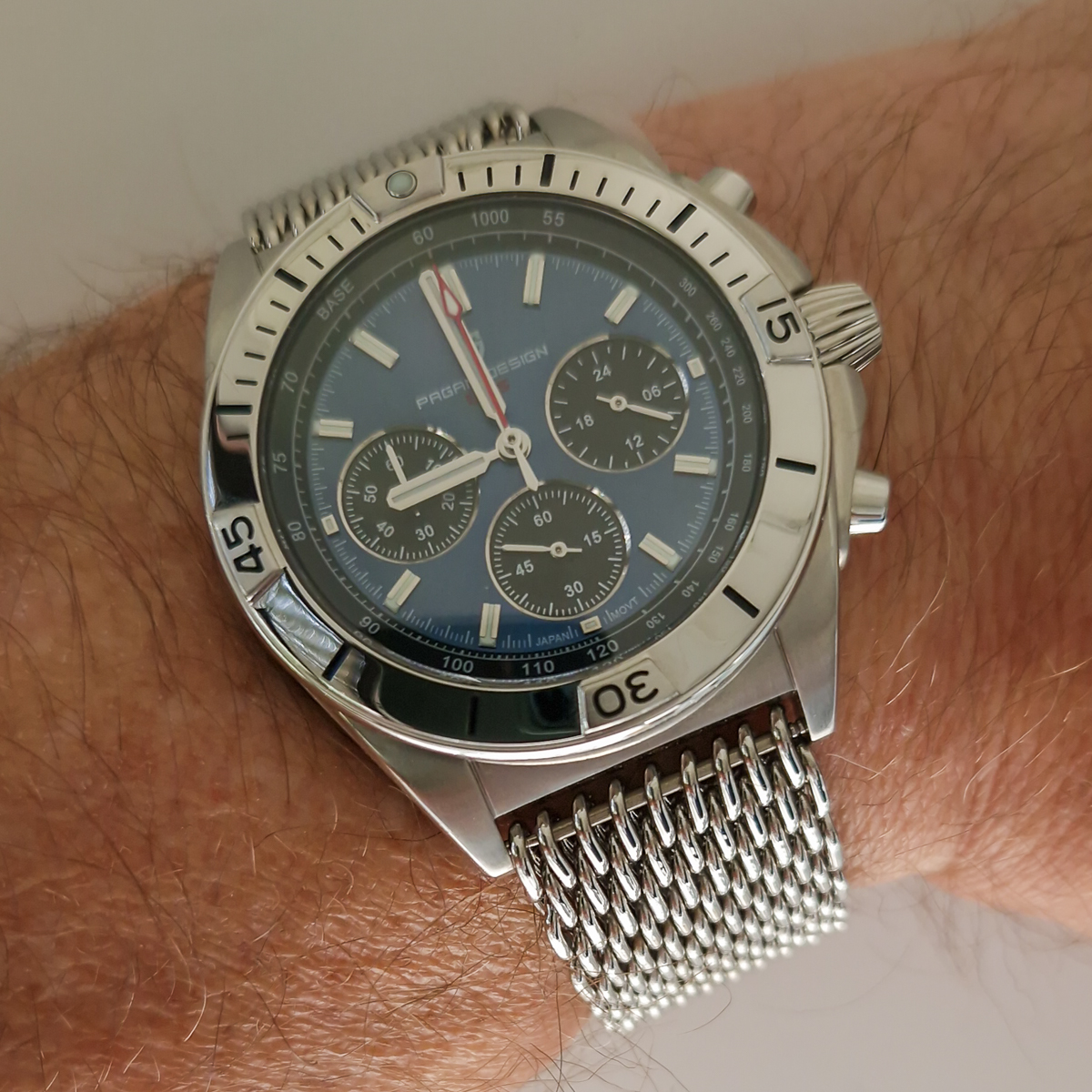 Beim Betrachten meines Fotos wunderte ich mich über diesen komischen Rand in der oberen Hälfte des Bezel-Inlays. Da war doch tatsächlich noch ne Folie auf dem Glas