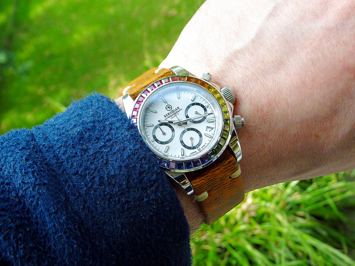 Was mich an der Uhr fasziniert ist der Bügel über der Krone, nicht alltäglich!
