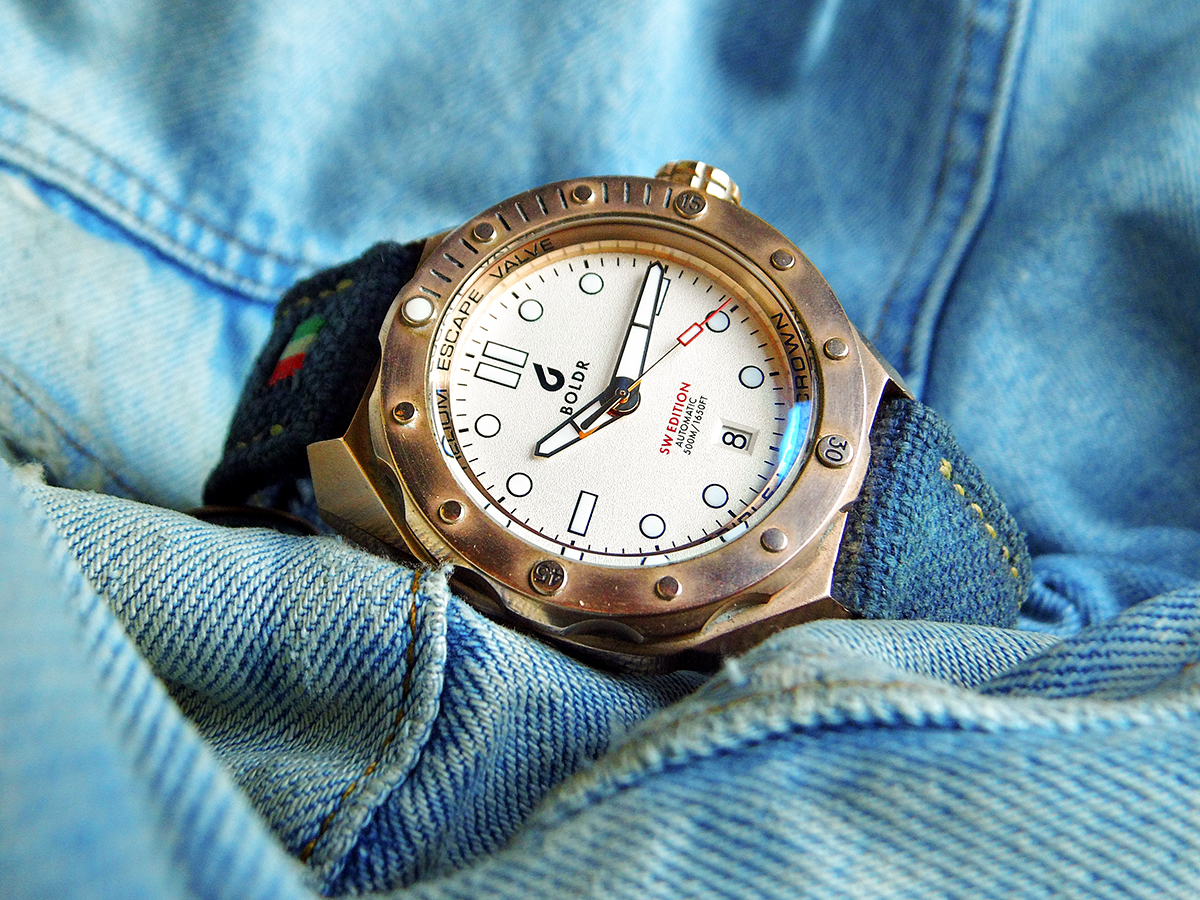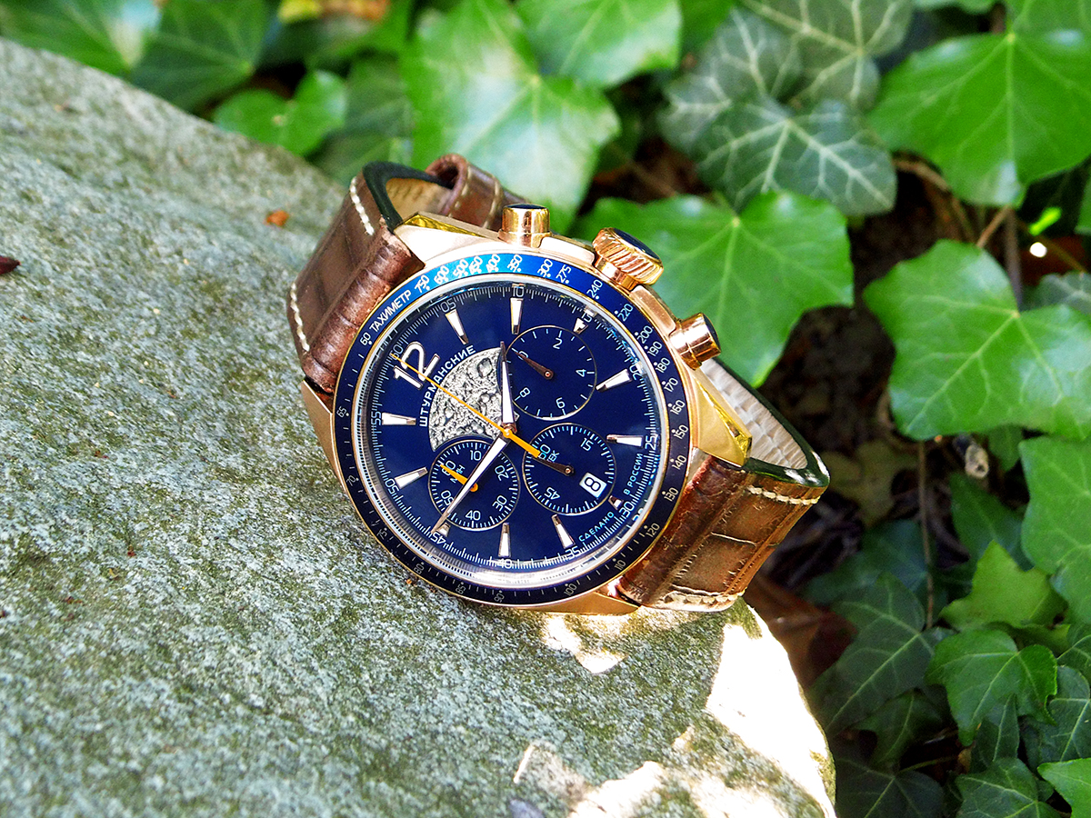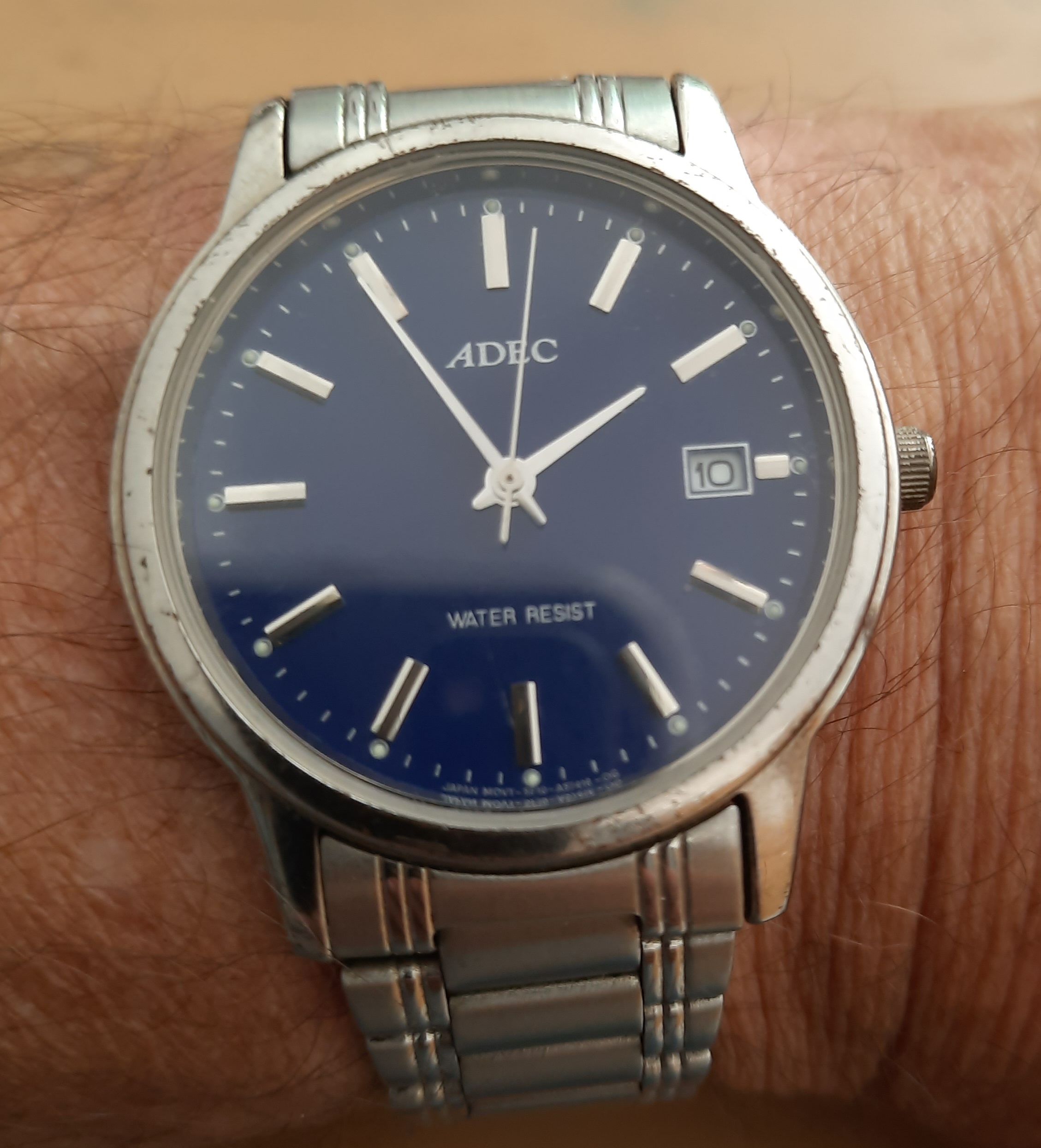 Letzten Dienstag habe ich die Schöne bestellt und heute morgen klingelte schon der Fahrer von FedEx an der Türe. Bin leider erst jetzt dazu gekommen, das Ührchen auszupacken, die Folien zu entfernen und das Armband anzupassen. Und WOW!! Was für ein Gerät! Das Blau des Zifferblatts sticht sofort ins Auge. Vor allem im Sonnenlicht knallt die Farbe wirklich extrem, was durch den Sonnenschliff noch verstarkt wird. Als Zweites fällt natürlich das Armband auf, welches der eigentliche Grund für den Kauf war. Aus dem Vollen gefräste Glieder werden hier durch Inbus-Stifte verbunden, die am anderen Ende ein Innengewinde haben, in welches dann eine Inbus-Schraube mit einem wirklich winzigen Gewinde eingeschraubt wird. Grobmotoriker sollten hier Vorsicht walten lassen, um dieses wirklich filigrane Gewinde nicht zu ruinieren.
