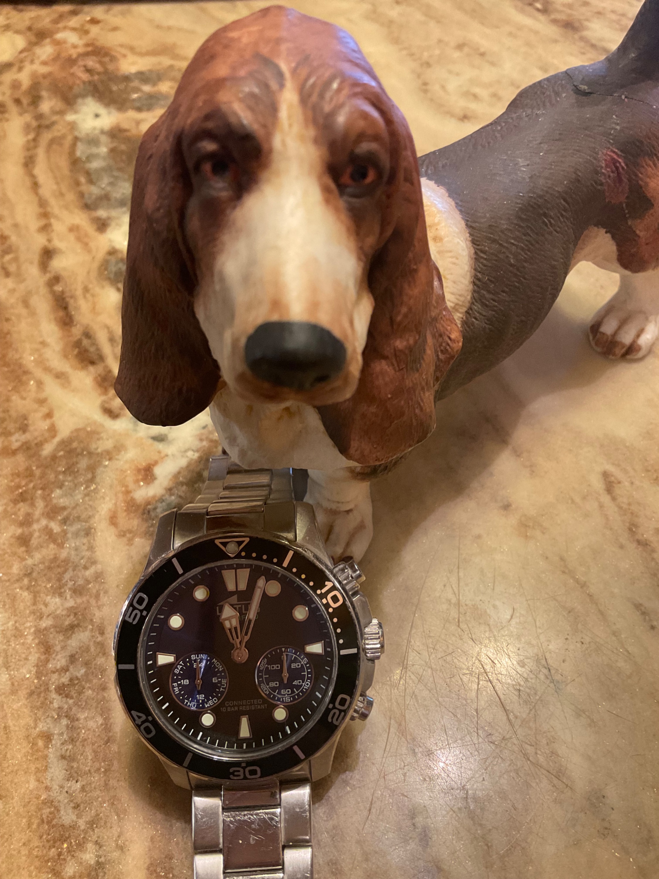 Ich traue mir garnicht das Bild mit den Basset und der Uhr zu zeigen, einen ausgesprochenen Katzenfreund wie Dirk ist, oder war?