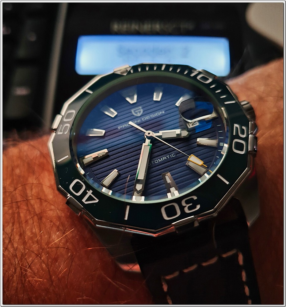Das ist ja witzig. Als ich heute morgen in die Stadt musste, war ich am Überlegen, welche Uhr ich denn anziehe. Hatte dann schon die blaue Aquaracer am Arm, aber dann hab ich sie wieder abgelegt und statt dessen die Pagani Carrera Calibre RS Hommage entschieden.