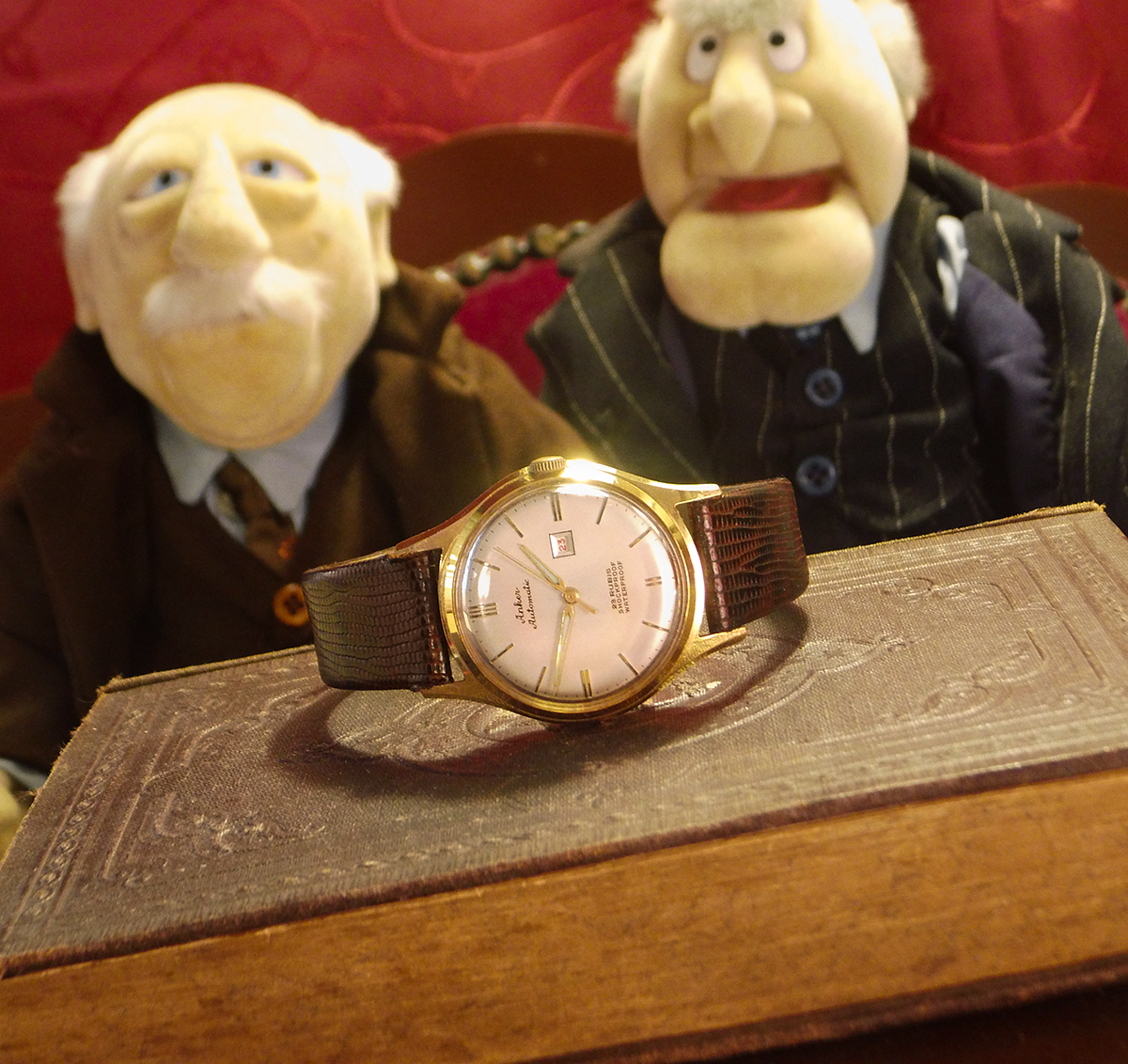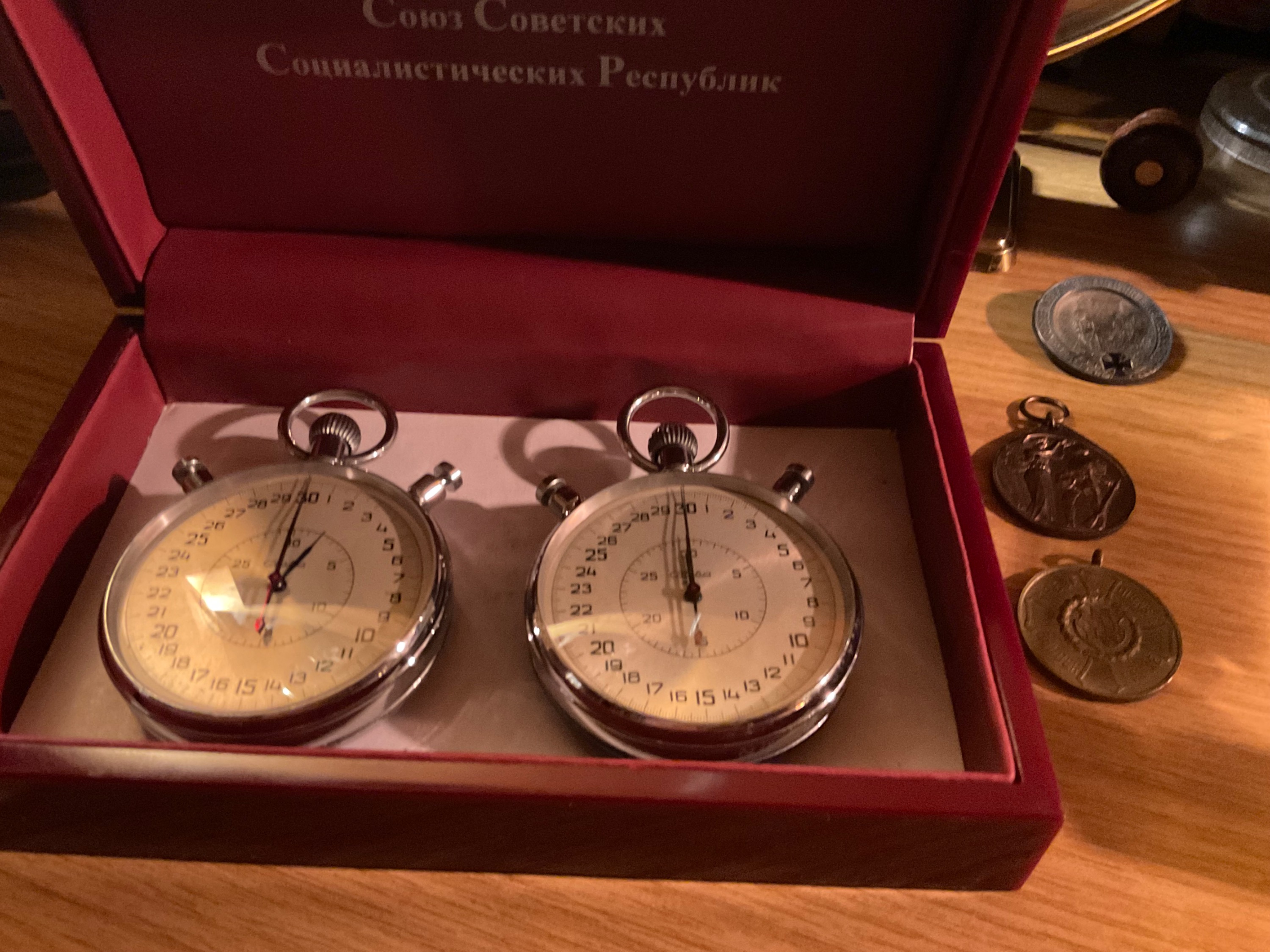 Dieses schwere Kaliber hätt‘ ich bald vergessen. Derweil liegt es in einer aufgemotzten Kasette direkt vor meinen Augen. Habe die Kasette etwas zweckentfremdet,(man möge mir verzeihen) aber sind ja beide bald aus einen Haus? Slava und Poljot.