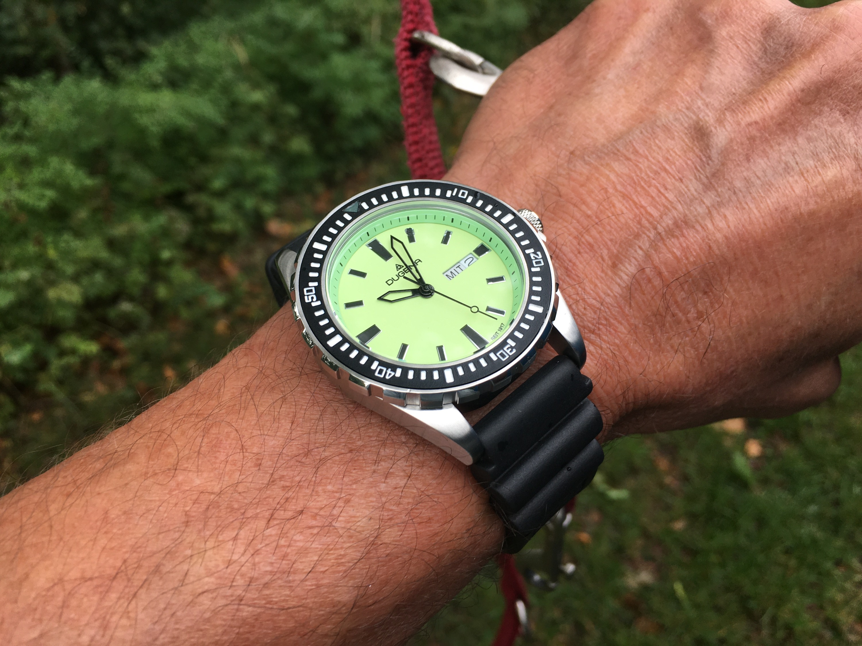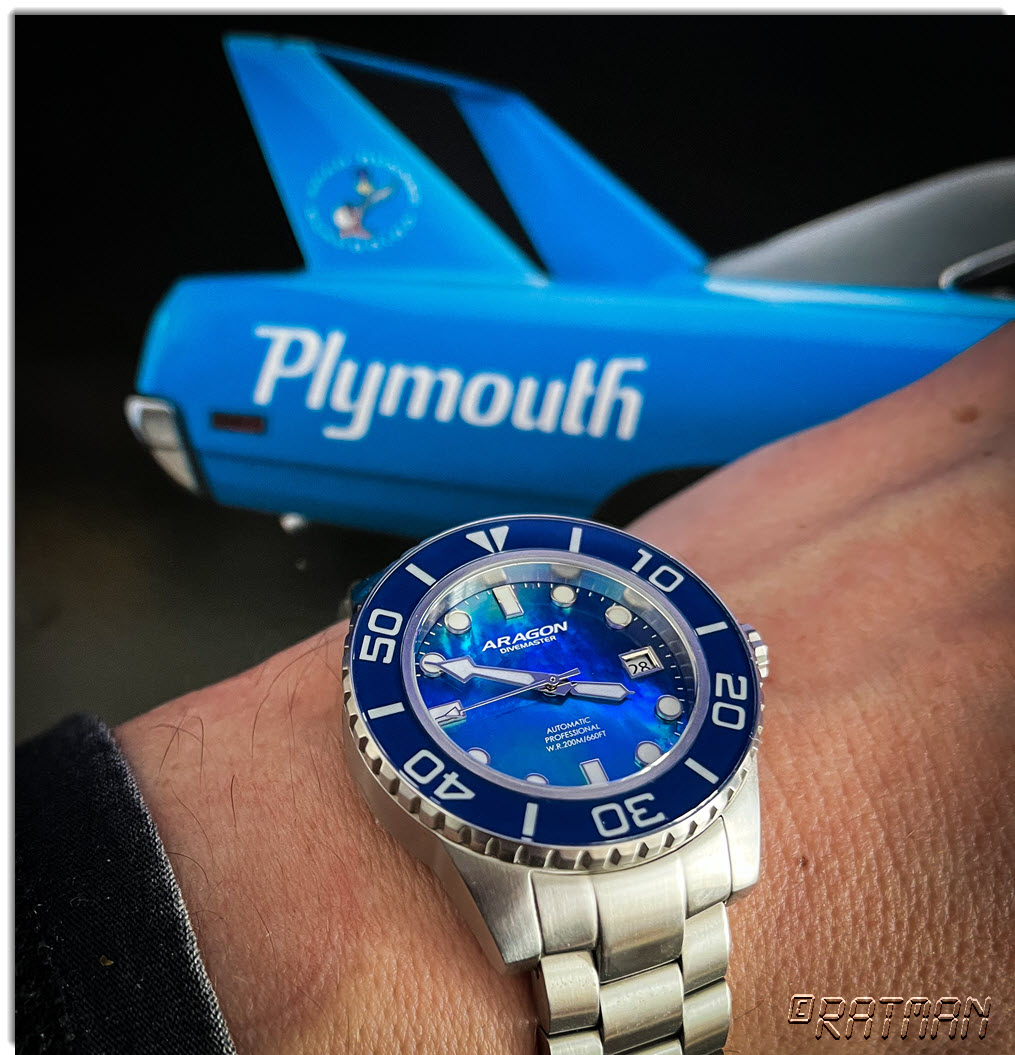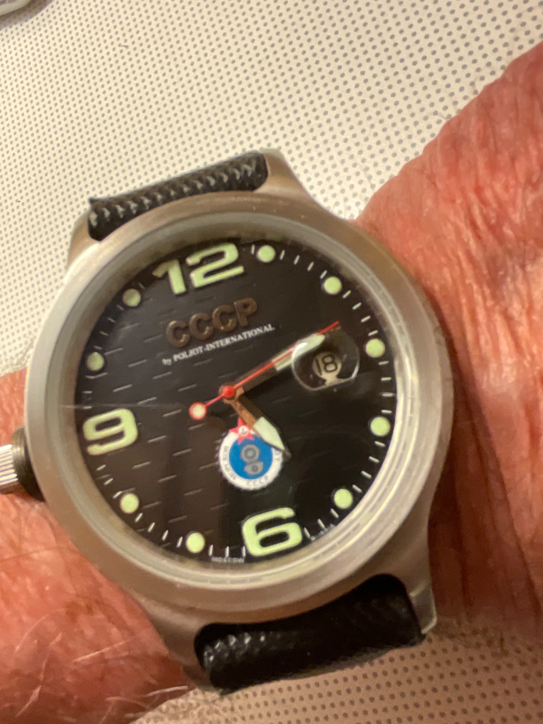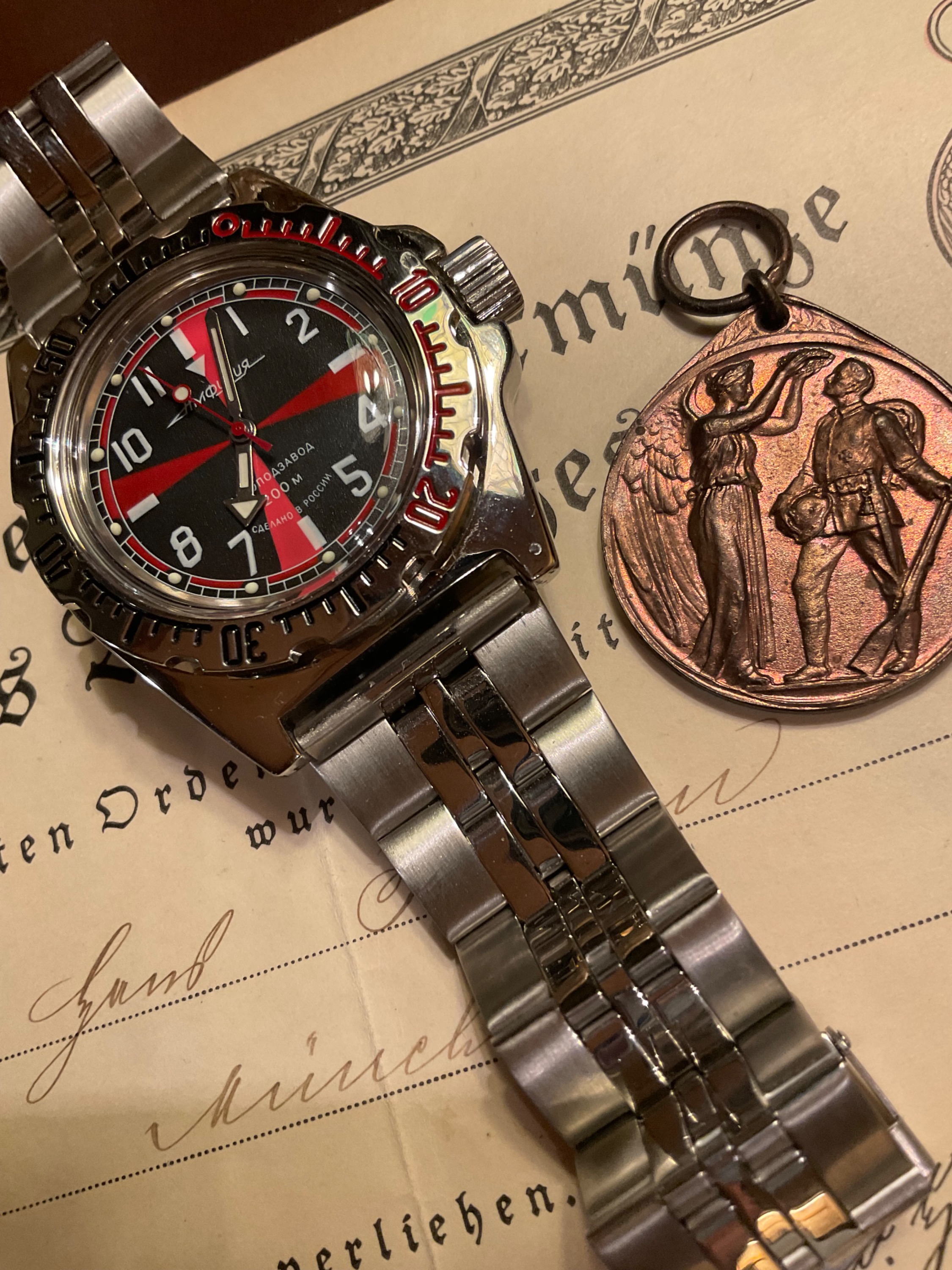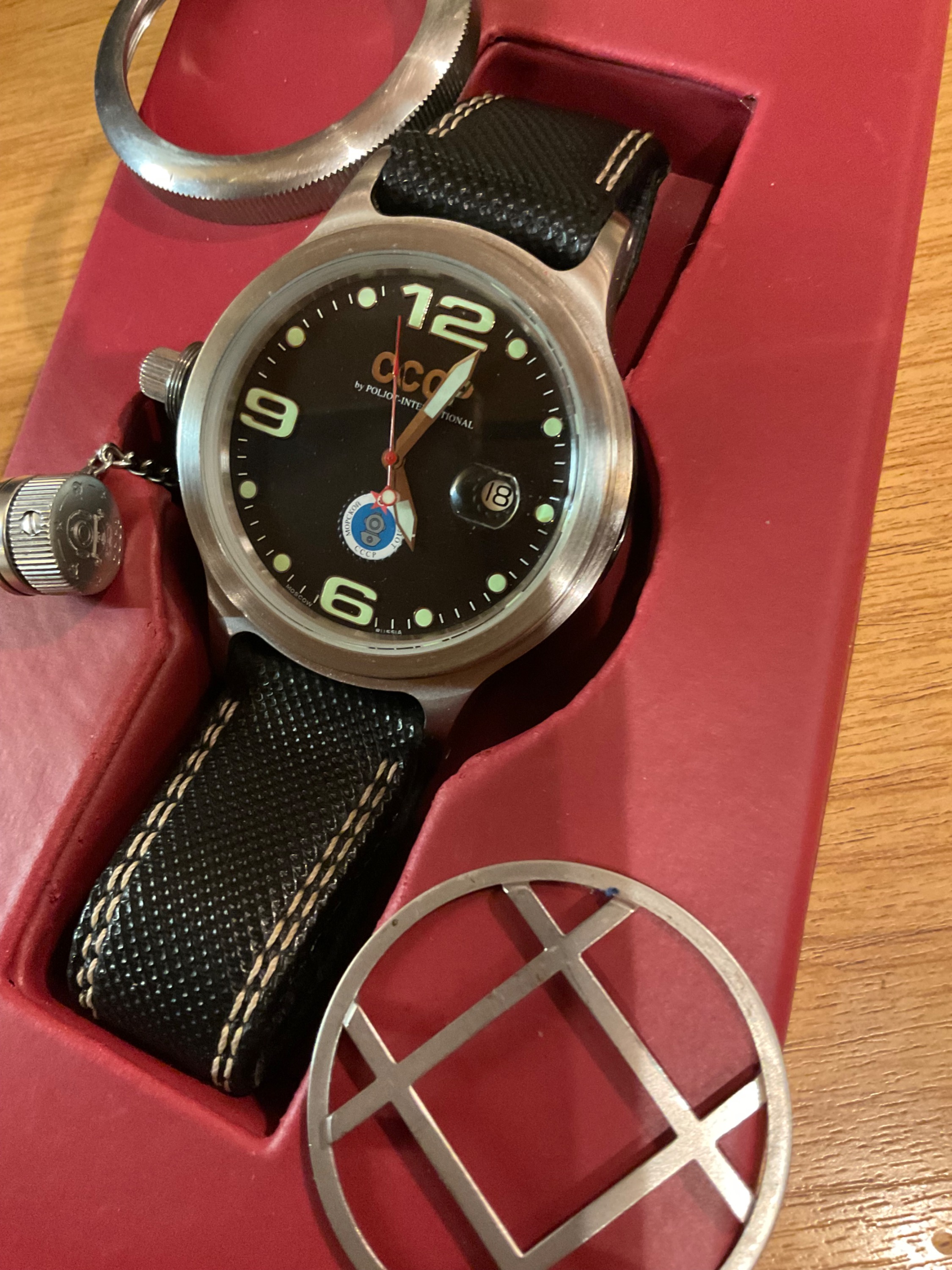 Bei der Taucheruhr ist es die „CCCP Poljot International 1952 Marine Aquanaut“ Ein paar Schrammen hat sie, vermute mal, ein Hai hat sie als unverdauliches Stück ausgespuckt, denn Taucher hat er behalten?