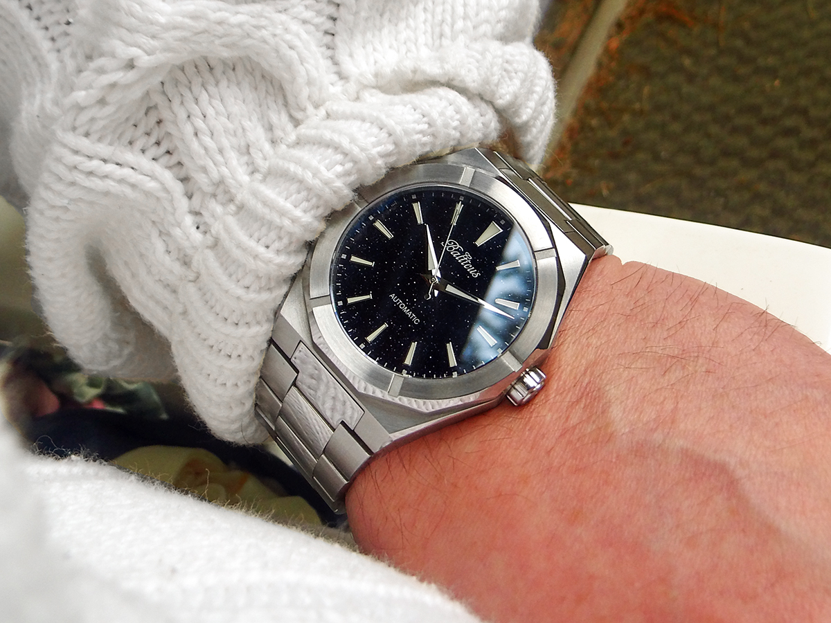Die meisten anderen Aragon-Modelle (Taucher) wären mir aber mit 44-45 mm zu gross (diese eckige ohne Lünette am Millipede-Band dürfte gehen, gefällt mir übrigens auch recht gut)