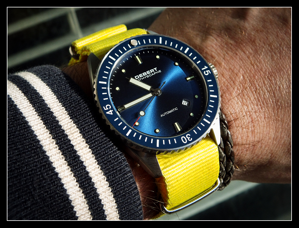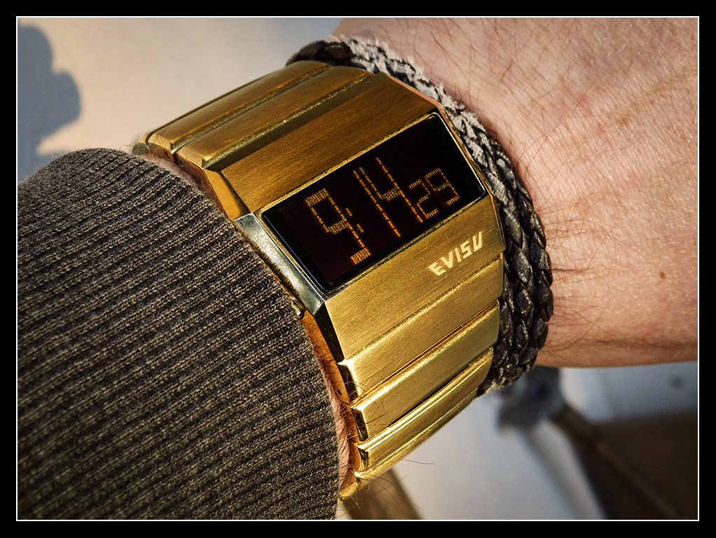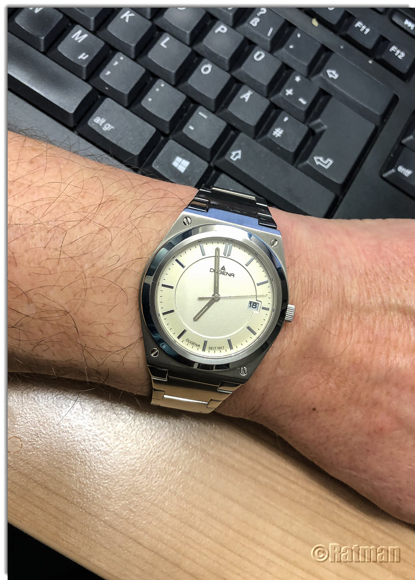 Heute am Arm: Dugena Terminal, für kleines Geld bei Ebay geschossen. Trotz der kleinen Größe von knapp 40 mm sehr präsent am Arm. Massives Edelstahlgehäuse und -band, MIYOTA 2315, Saphirglas! Die Original-Verpackung war auch dabei.
