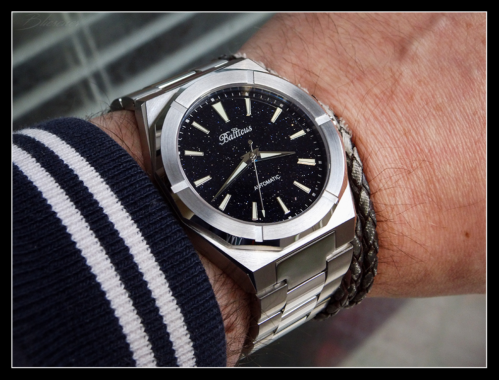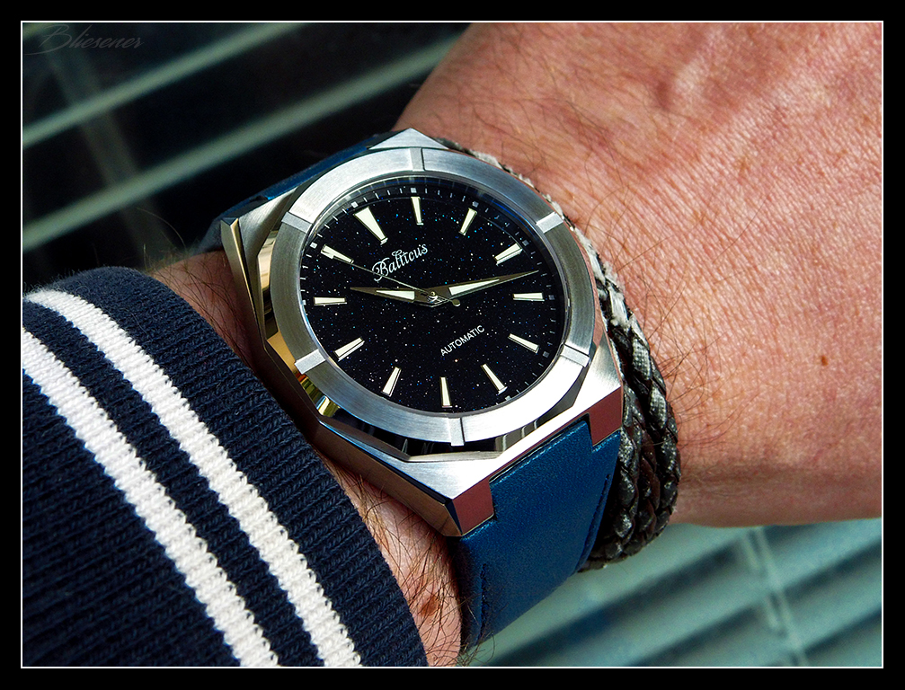 Das hat aber jetzt flott gegangen mit der Uhr. Ich finde die einfach unglaublich scharf. Klar, das Design ist nicht jedermanns Sache. Eine Uhr, die polarisiert. Ich denke, das Zifferblatt ist der Knackpunkt, sowas muss man einfach mögen. Manch einer, der von den klaren linien des Case angezogen wird, mag sich am verspielten Zifferblatt stoßen. Mit persönlich gefällt es sehr gut. Ich würde die Uhr auch mit neutralem ZB lieben, aber dieses Sparcle-Ding gibt dem Wecker nochmal nen Extra-Kick!