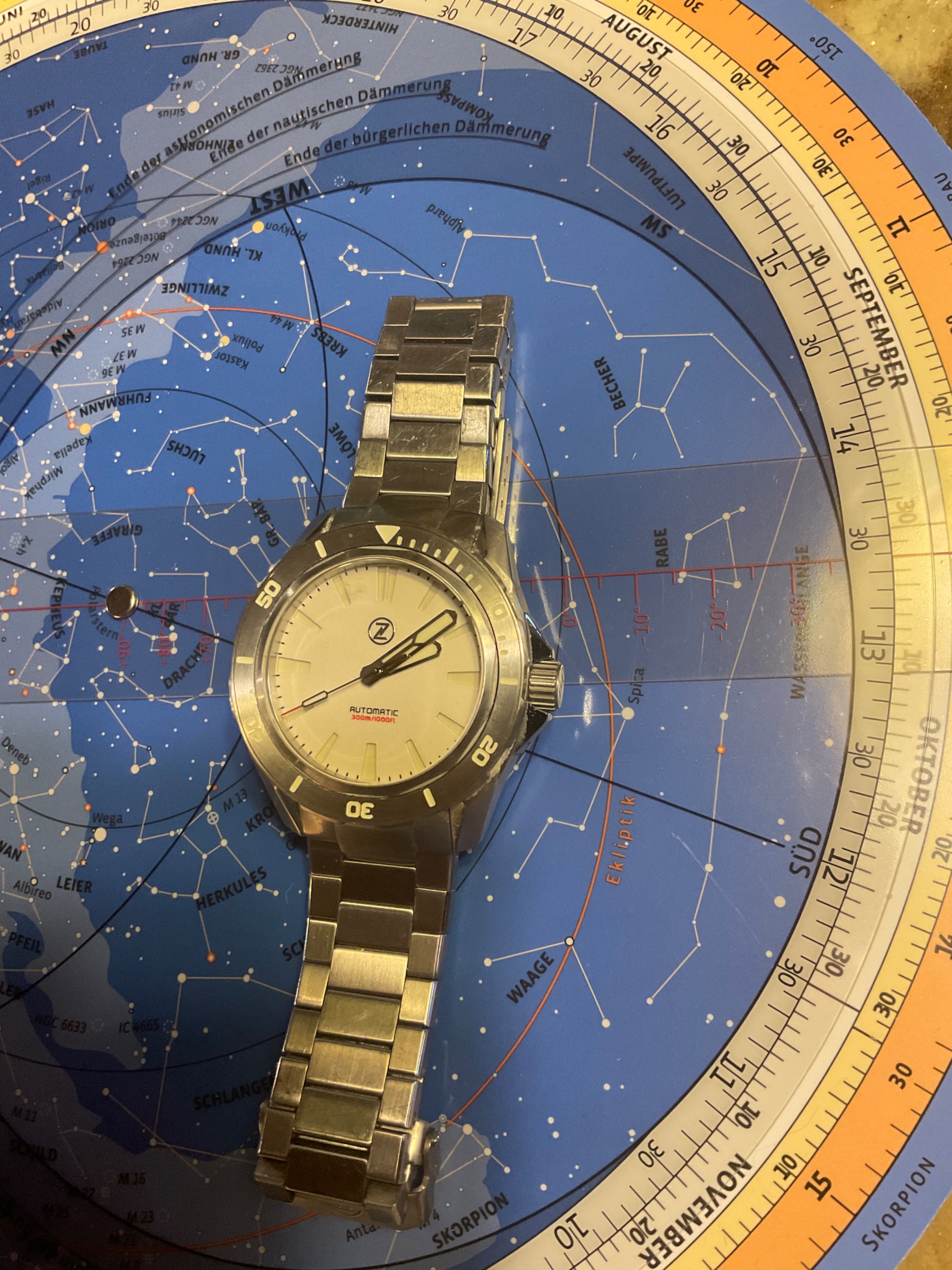 rry, schöne Uhr, aber das Hellbraune Lederband passt für meinen Geschmack nicht so richtig zum genialen Blau!