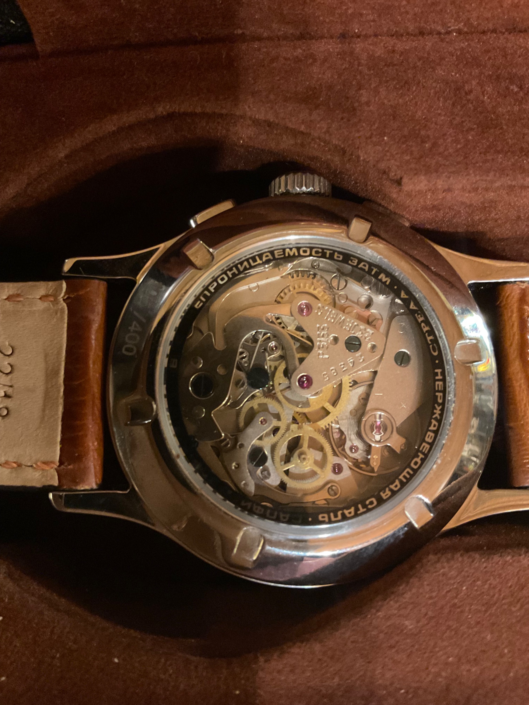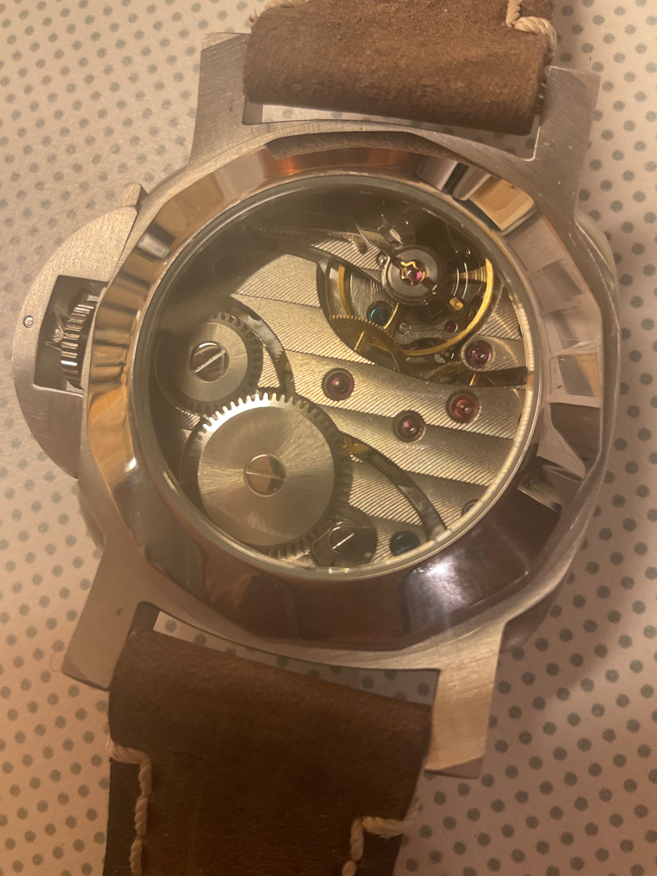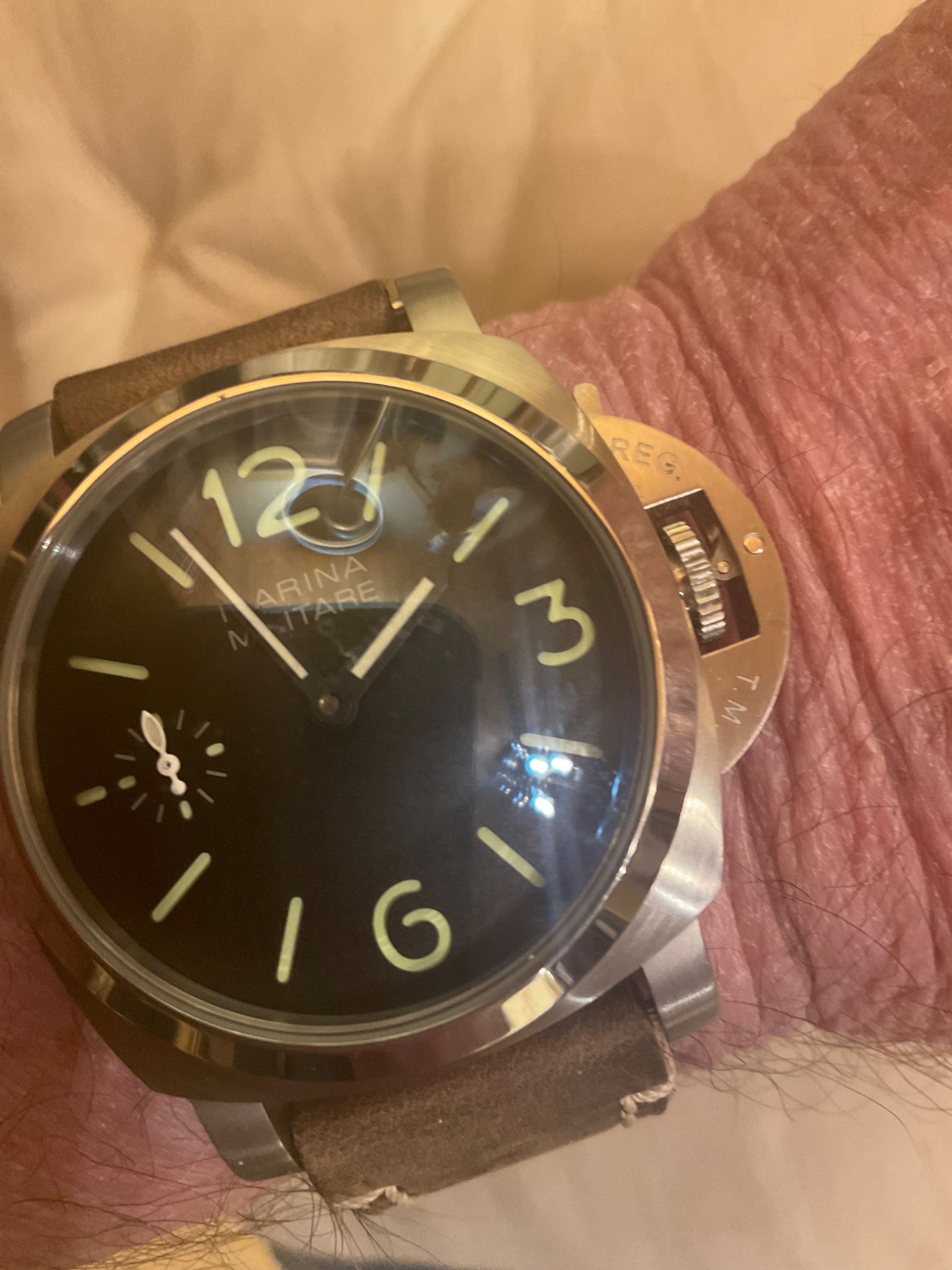 “Marina Militare“, der Grund für den Kauf, das verglaste Werk hat mir gut gefallen, und auf den „Index“ ist sie auch mal gestanden! Und sogar eine Schwanenhalsregulierung sehe ich, und gebläute Schraubenköpfe besitzt sie auch noch!