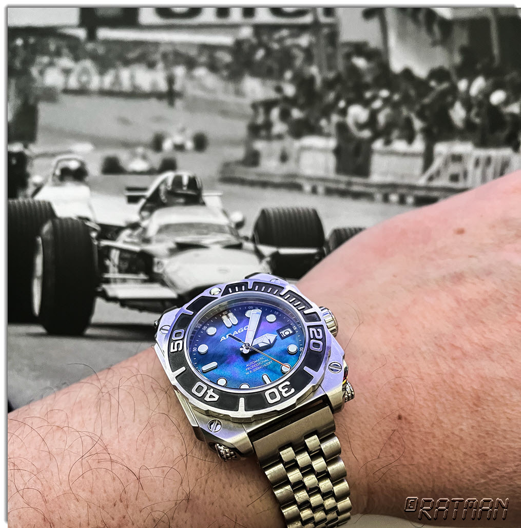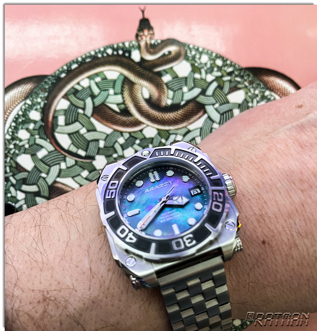 ARAGON DF DiveTank MOP, jetzt mal am Jubilee-artigen Band. Überzeugt mich auch nicht 100%ig, die Lücke zwischen Endlinks und Case ist unschön.