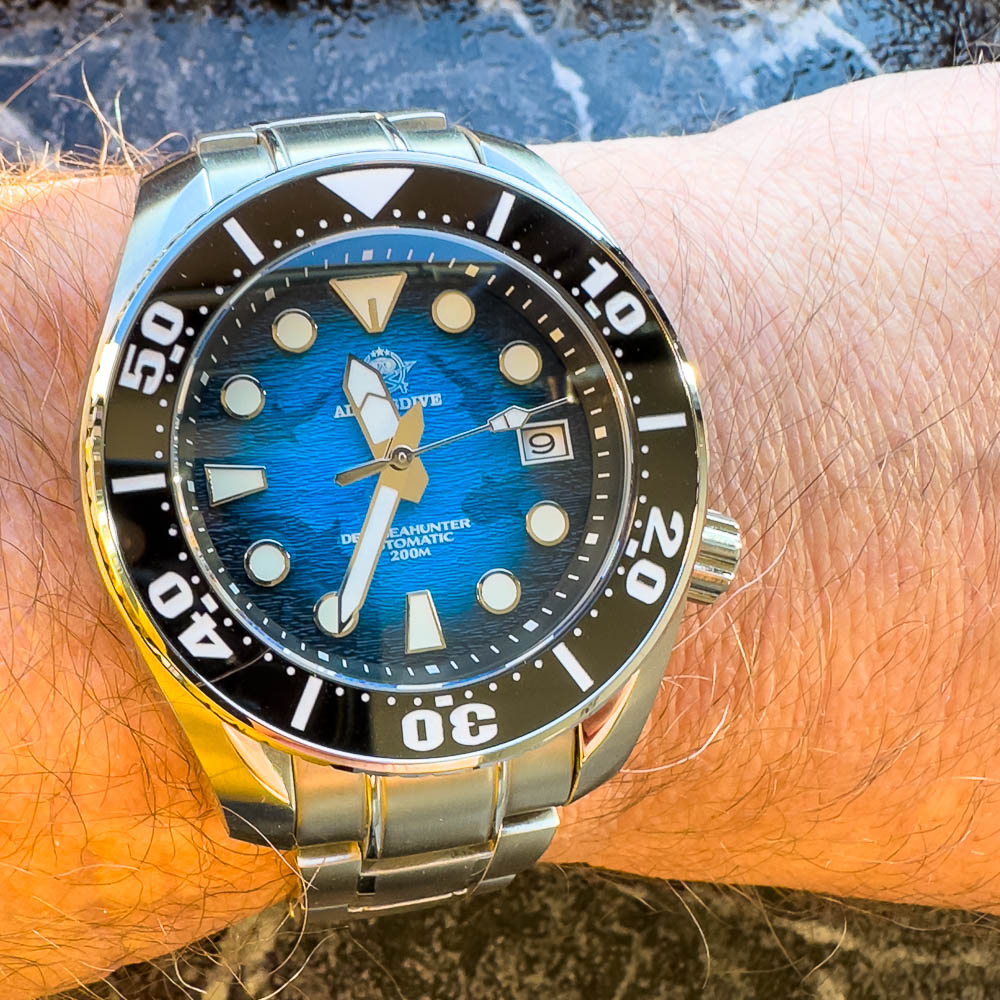 So, hier nun der letzte Neuzugang meiner Bestellungen aus dem letzten Jahr: ARAGON DF DiveTank 40 mm MOP. Das mitgelieferte Silikonband habe ich erstmal gegen ein Engineer getauscht, ich habs ja nicht so mit diesen Gummidingern
