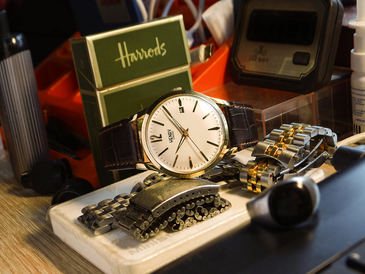 Vor einigen Jahren gab es mal eine DeTomaso "Tasca", Handaufzug, ein schönes Ührchen, werde die demnächst mal suchen gehen. Liegt vermutlich im Karton mit den "Vintage-Klamotten", die ich für Oldie-Treffen trage.