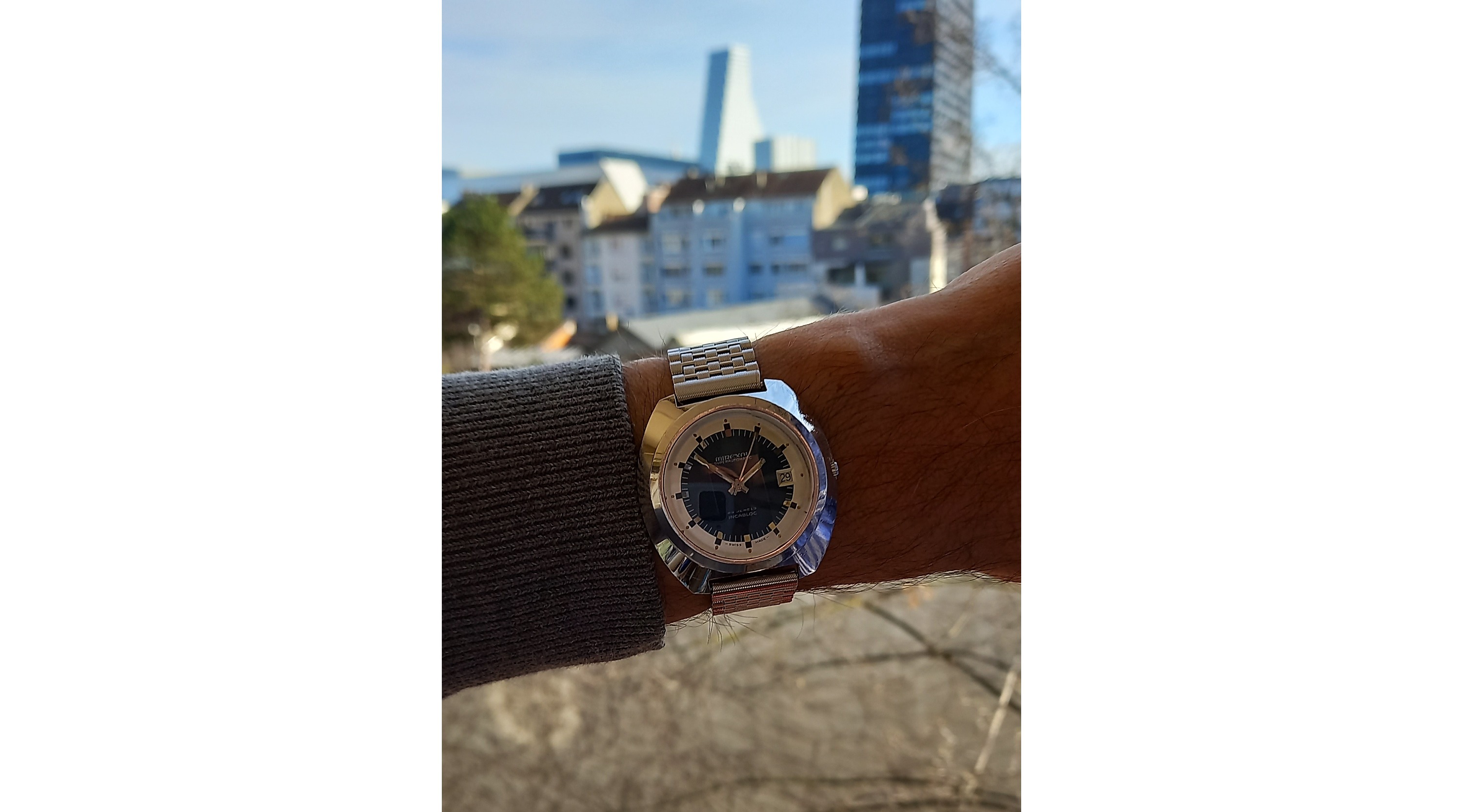 29 Jan. 2024 16:06 - 29 Jan. 2024 16:35Heute meine 'Mirexal C-757.435' Automatic mit ETA 2783, etwa von 1975, mit hochglänzendem Edelstahlgehäuse, die Form erinnert etwas an die Doxa-Taucheruhren und mit dickem Plexiglas, das auf der Innenseite facettiert ist. Mirexal war eine Kaufhausmarke der Schweizer Supermarktkette Migros und existierte von 1968 bis 1982.