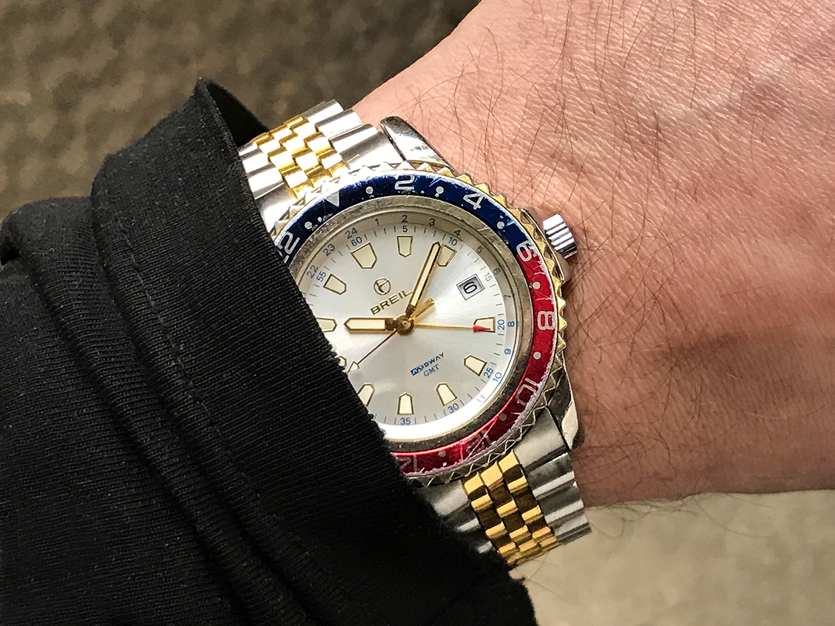 Und was war an dieser Uhr das sensationelle? Das Band, kein Spalt im Band, auf dass sich kein Körperhaar einzwicken konnte. Das Band wie ein Armreif, und doch so flexibel wie keines zuvor! Die Uhr verrutscht keinen Millimeter!