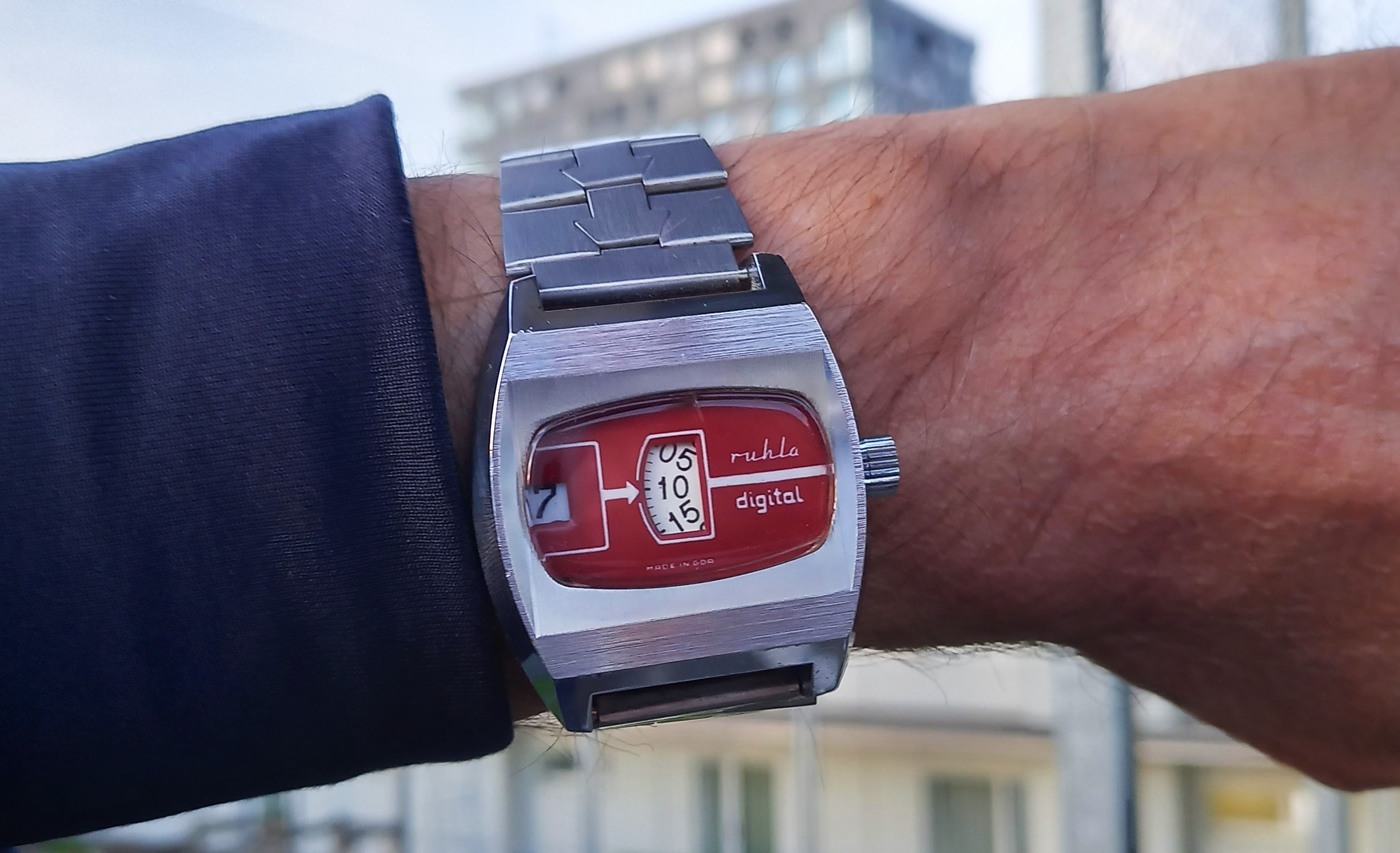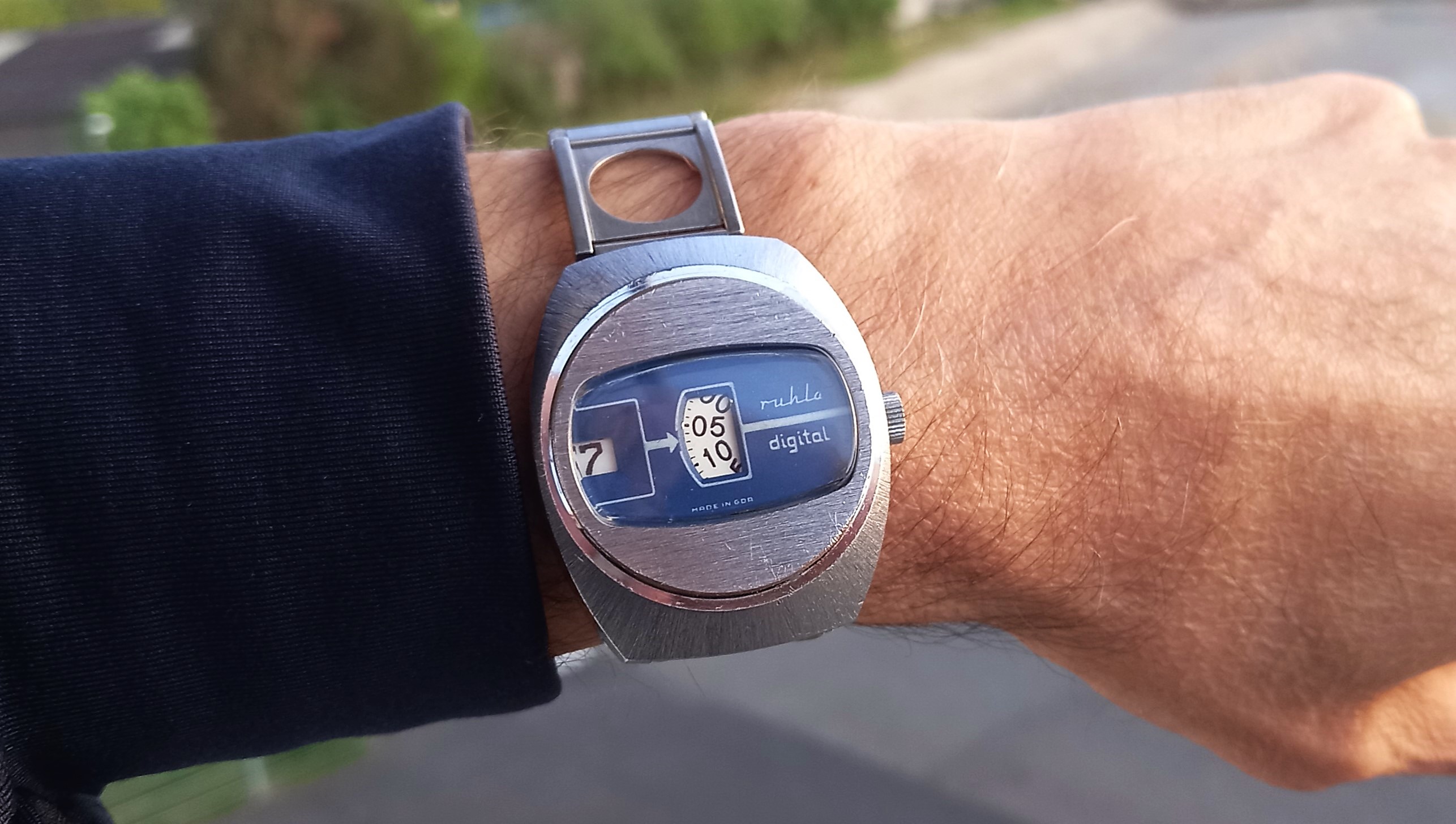 Ruhla-Festspiele: Heute trage ich meine blaue Ruhla Digital im UFO-Gehäuse. Die hab ich schon mal gezeigt, aber hier sind neue Fotos.