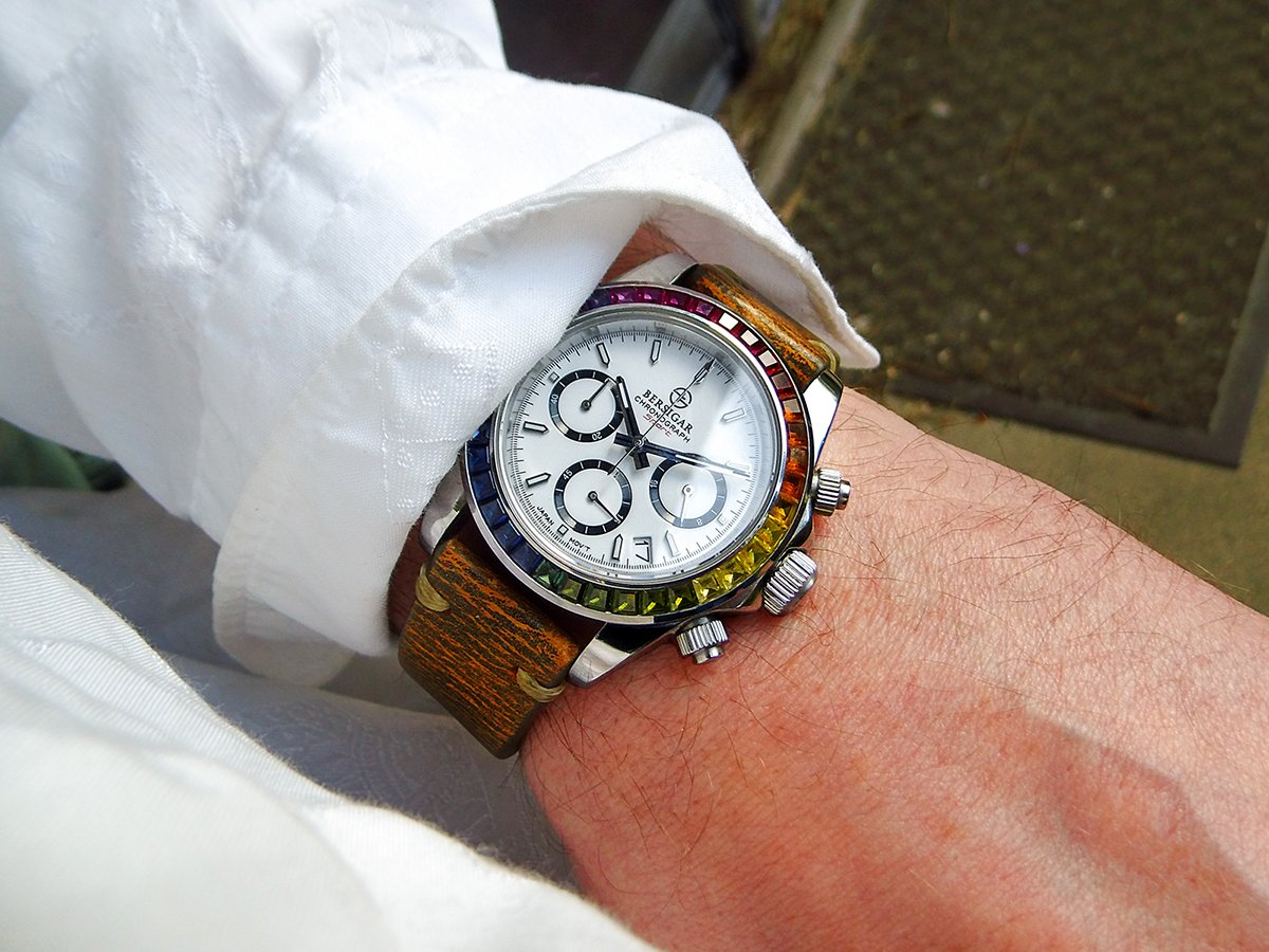 Wobei ich keinen Besitzer und seinen gezeigten Lieblingen hier zu nahe treten möchte! Die zuletzt gezeigte „Aseikon 23“ zeigt ganz deutlich seinen etwas, bzw. ganz anderen Geschmack, den ich für sehr gut finde! Die ovale Form der Uhr, die eigenartige Anordnung des Datumsfenster, abweichend von der runden üblichen Form. Deshalb begeistern mich auch z. B. rechteckige Formen, die ihren Höhepunkt in der „Heuer-Daytona“ findet, ein Meilenstein der Uhrengeschichte.