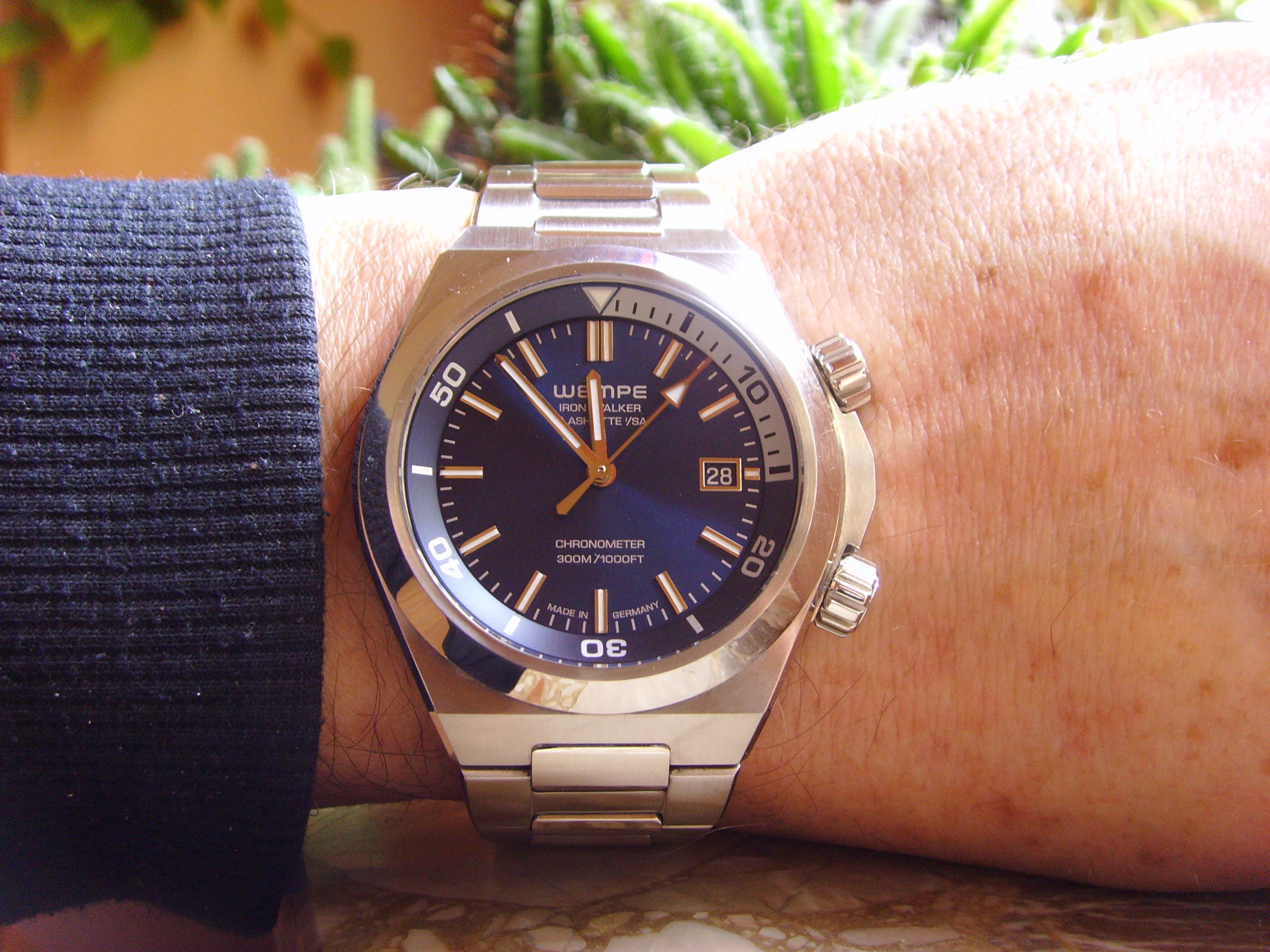 Diese Uhr ist eine der flachsten Tauchenuhren. Der Durchmesser der Uhr beträgt 36mm, wobei die Uhr etwas kleiner rüberkommt, weil die Lünette (unverlierbar, weil verschraubt) Platz einnimmt.