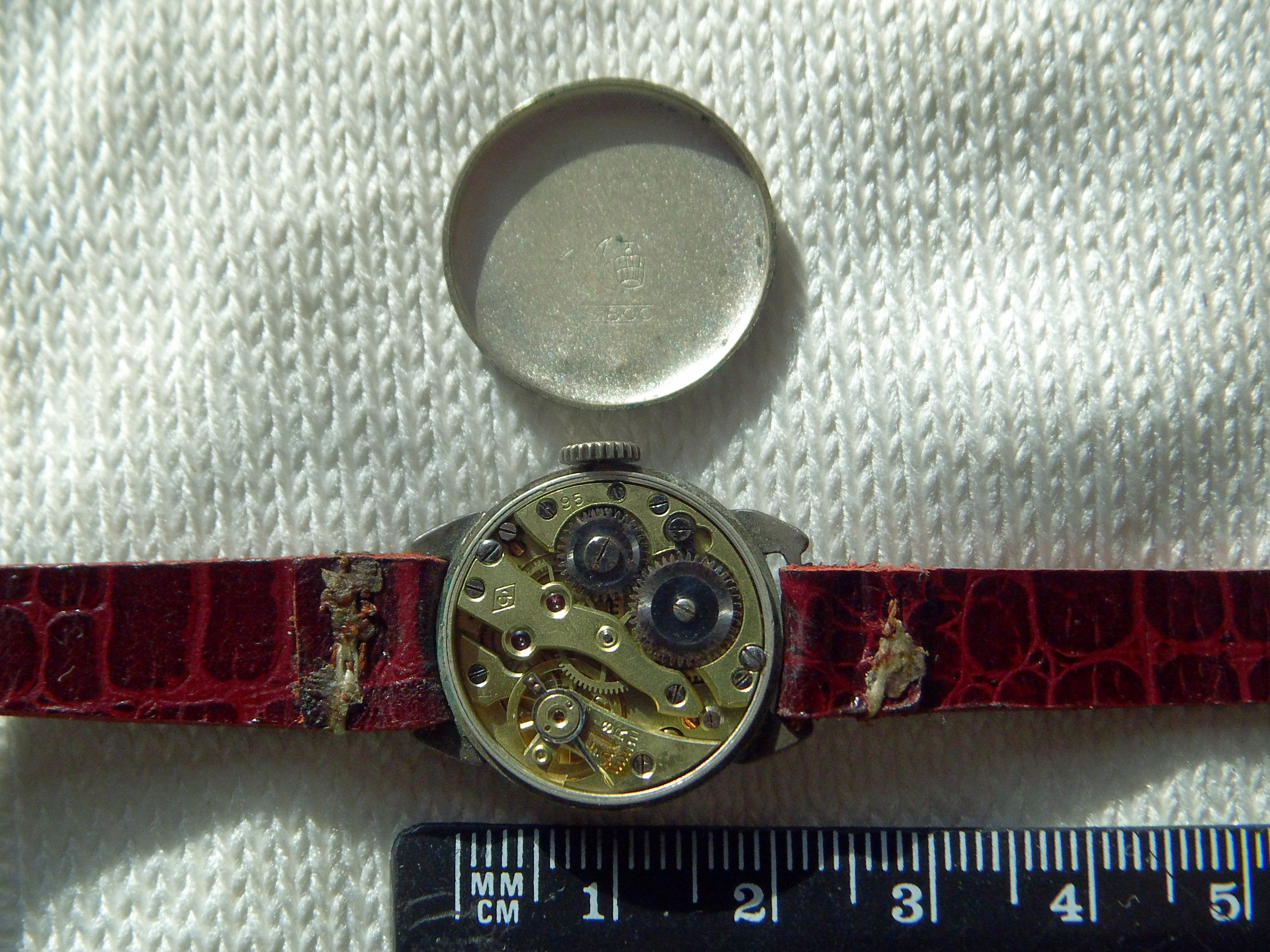 Ich habe aber mal dein Bild mit den Werken in 'Paulson's Master Key' (1950) verglichen. Es ist sicher ein Landeron. Drei abgebildete Werke kommen in Frage, die man offfenbar von hinten nicht unterscheiden kann, sondern nur an der Aufzugdecke auf der ZB-Seite, alle sind 13 3/4 Linien gross (beim 48 und 54 gar keine Unterscheidung möglich nach diesem Schlüssel). Sie sind sehr ähnlich zu deinem, aber nicht ganz identisch (gemäss den Abbildungen). Es könnte noch mehr Landeron-Werke dieses Aussehens geben.