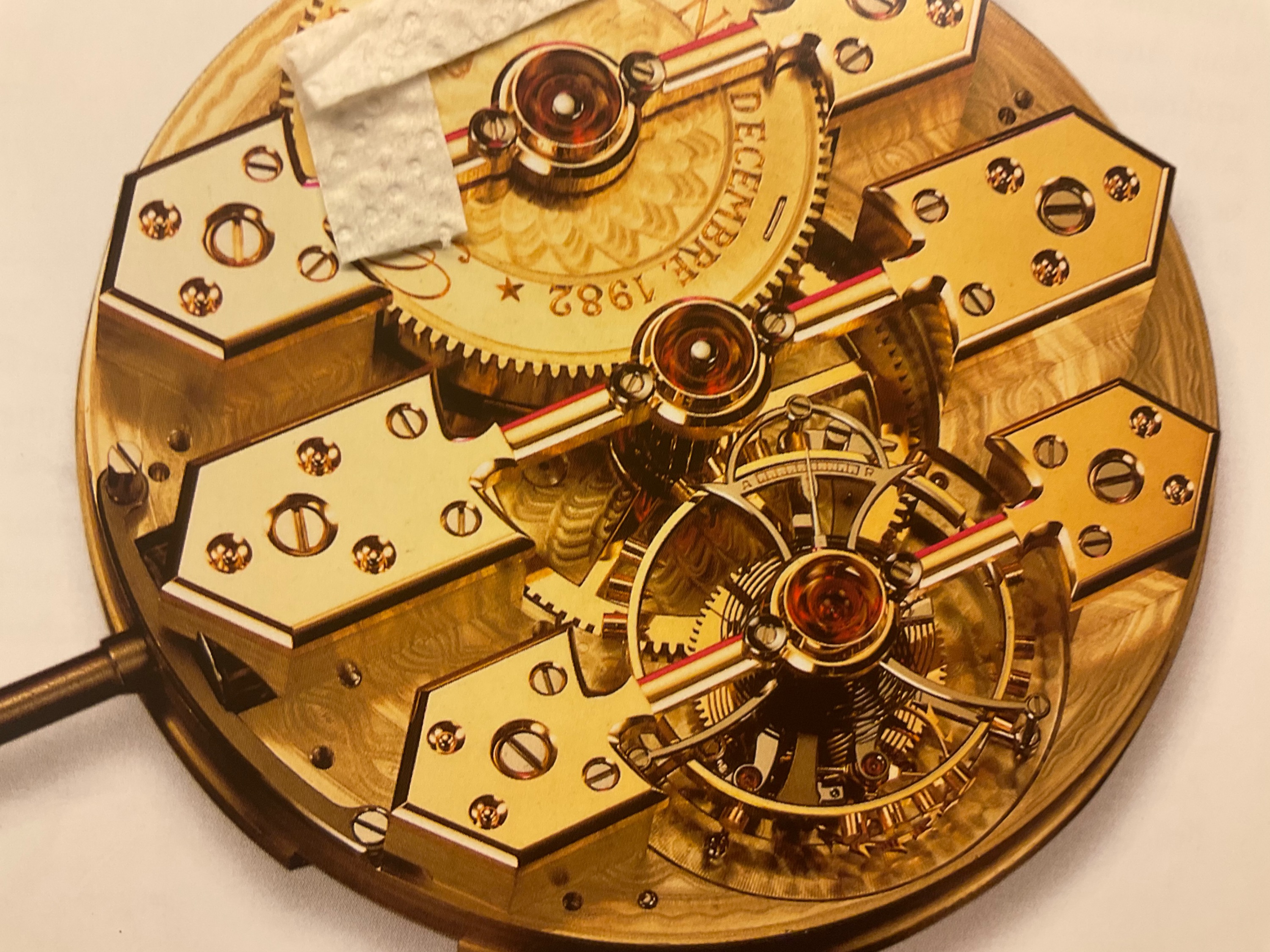 Was sind es denn nun für Werke? Ich erkenne sie nicht. Der 'Übermensch' dürfte wohl Breguet sein, nach dem Text zu schliessen und bei der zweiten Uhr gibt es wohl eine seltsame Variation eines Tourbillon (Zahnrad unter der Unruh), das Werk auffällig prachtvoll ausgeführt und ich lese da 1982, da hätte man vom Aussehen eher auf 1882 getippt. Wer macht sowas noch? Patek Philippe? Da reicht ein Einfamilienhaus nicht, dafür musst du einen Palast abgeben...