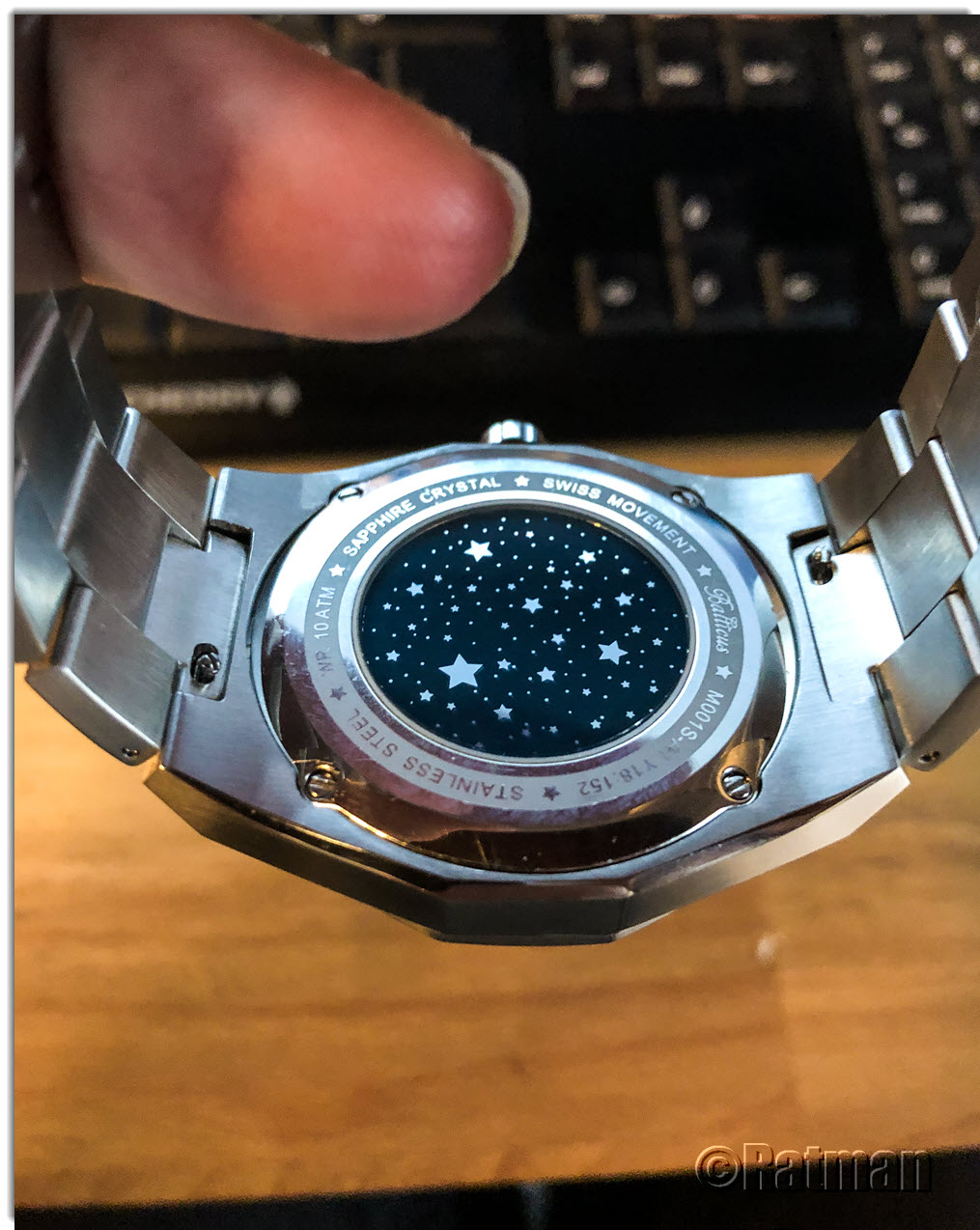 Was man leider auf den Photos nicht darstellen kann, ist dieses Funkeln und Glitzern des Zifferblatts. Das ist wirklich ein Hingucker, aber man muss sowas natürlich auch mögen. Manch einem wäre es zu viel Bling-Bling