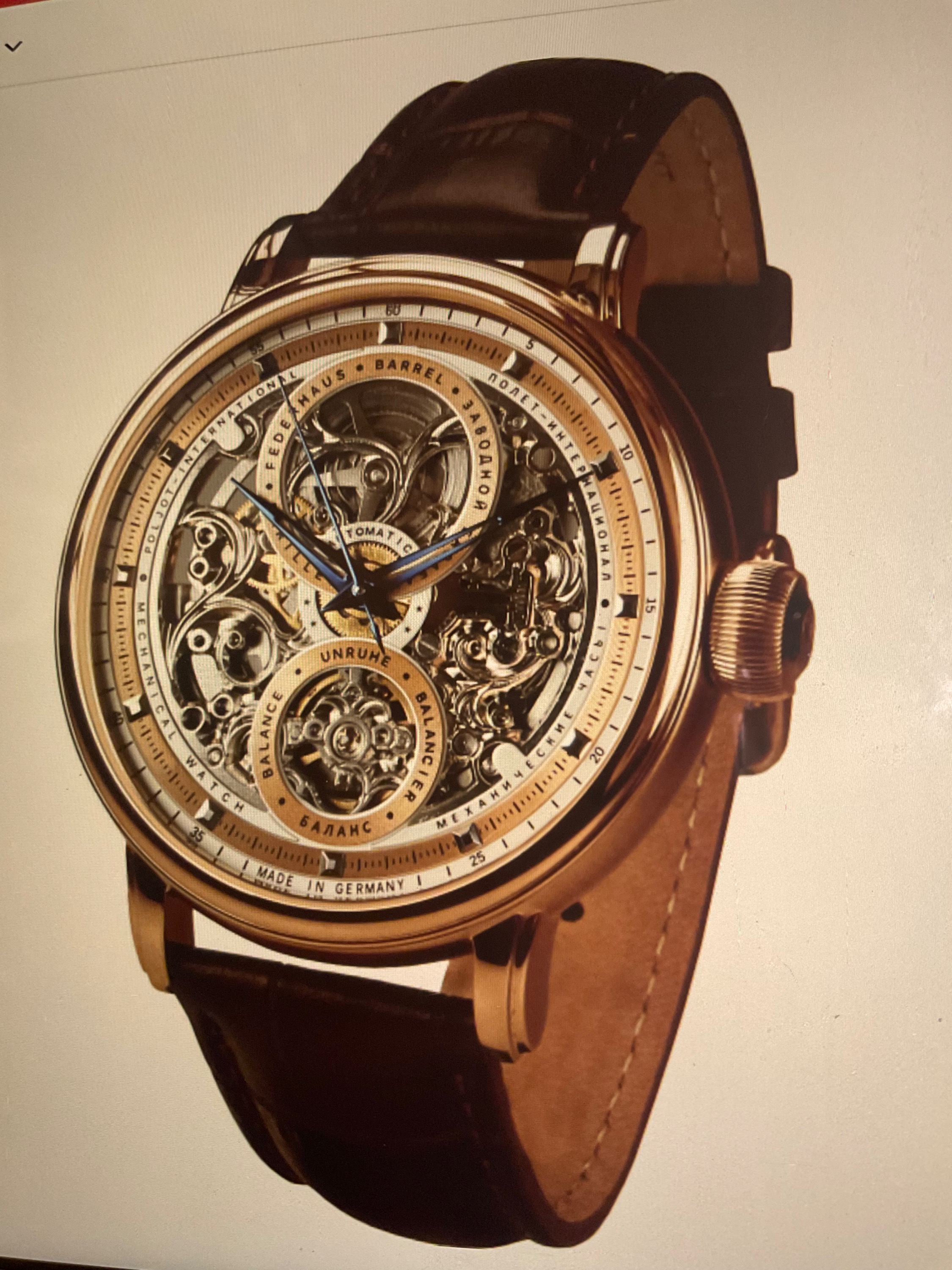 Die Poljot Hermitage Skeleton, die oben gezeigt wurde, finde ich nicht schlecht. Die Skelettierung ist gut gelungen. Man kann darüber streiten, ob es nötig gewesen wäre, die Unruh und das Federhaus durch einen Ring hervorzuheben und zu beschriften (ich finde das nicht so gut, man könnte dann auch noch "oben" und "unten" oder sowas anschreiben). Aber ich finde bei vielen Skelettuhren, auch bei teureren, Merkmale, die für mich die Uhr abwerten. So hat z.B. auch die Zenith Defy ein recht kleines Werk im Vergleich mit dem Gehäuse und die Stege des Zifferblattes verdecken viel von dem skelettierten Werk. Da ist die Swatch m.E. deutlich besser...
