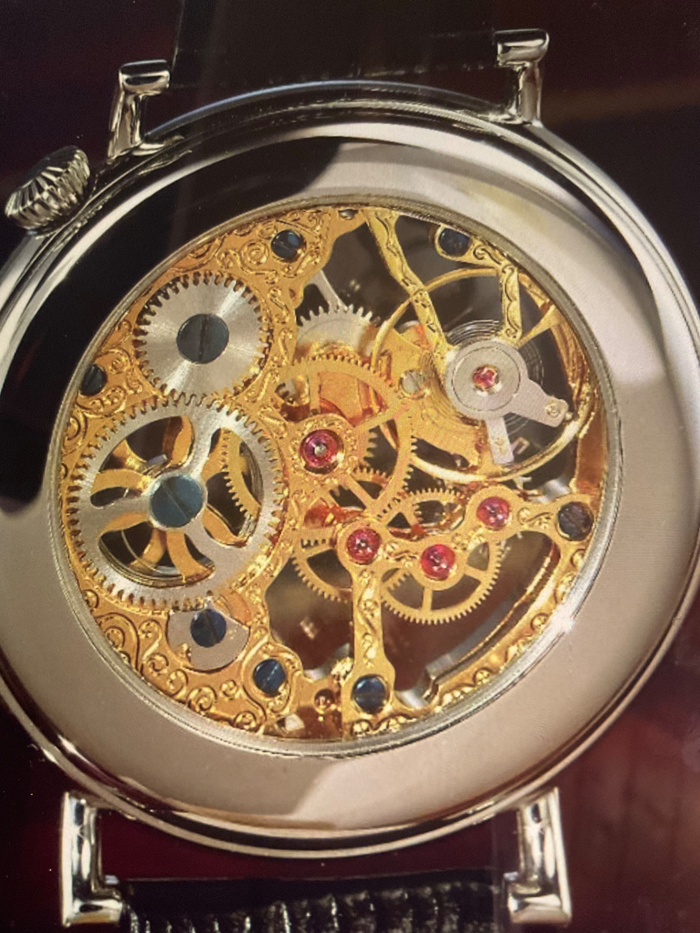 Dies ist eine Uhr mit handskelettiertem Werk von Jochen Benzinger (Pforzheim). Die florale Skelettierung orientiert sich an Dekors, die es schon hunderte Jahre gibt, das Design ist also sehr konservativ. Die Arbeit wurde auf höchstem kunsthandwerklichem Niveau ausgeführt. Das muss man dann auch bezahlen können. Das Bild stammt von der Seite www.jochenbenzinger.de/#news
