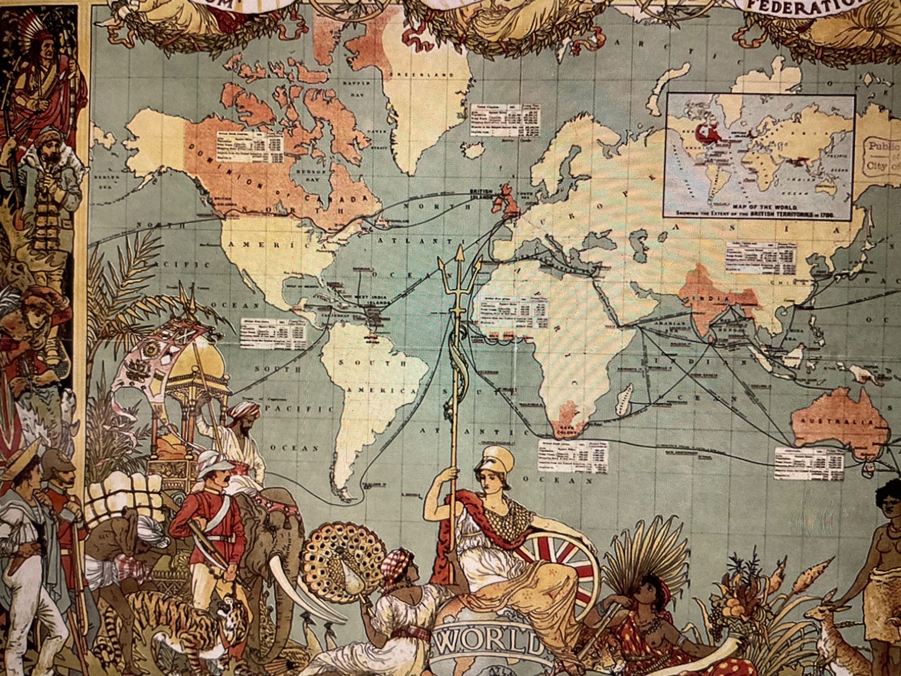 Das britische Empire mit seinen Ländereien und Kolonien und den Hauptschifffahrtsrouten um 1850