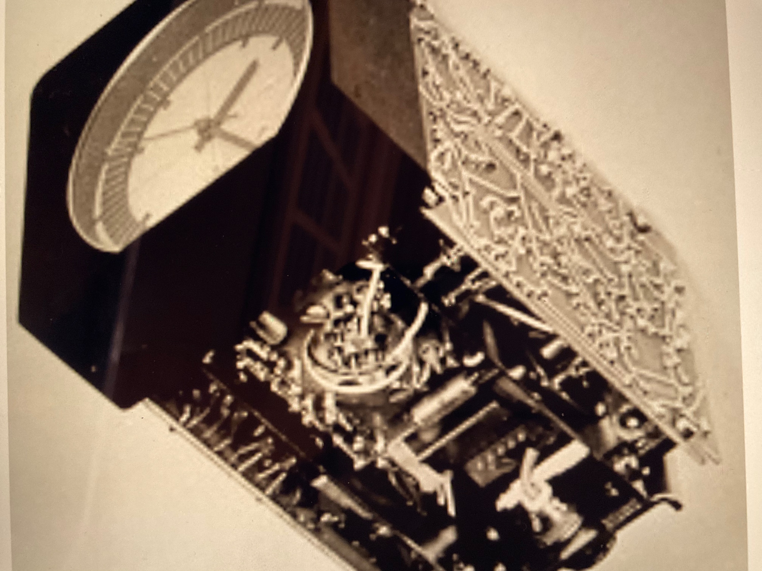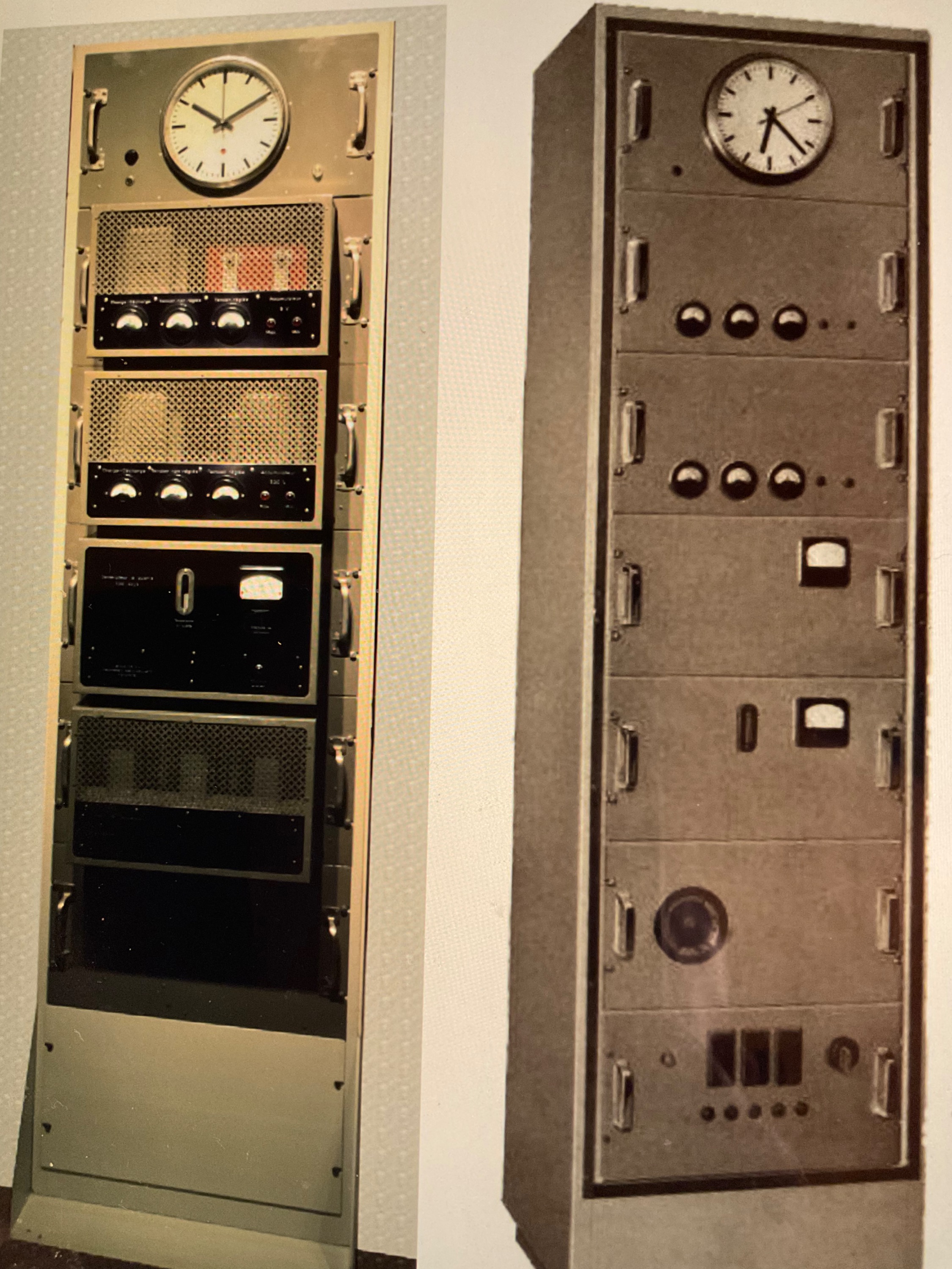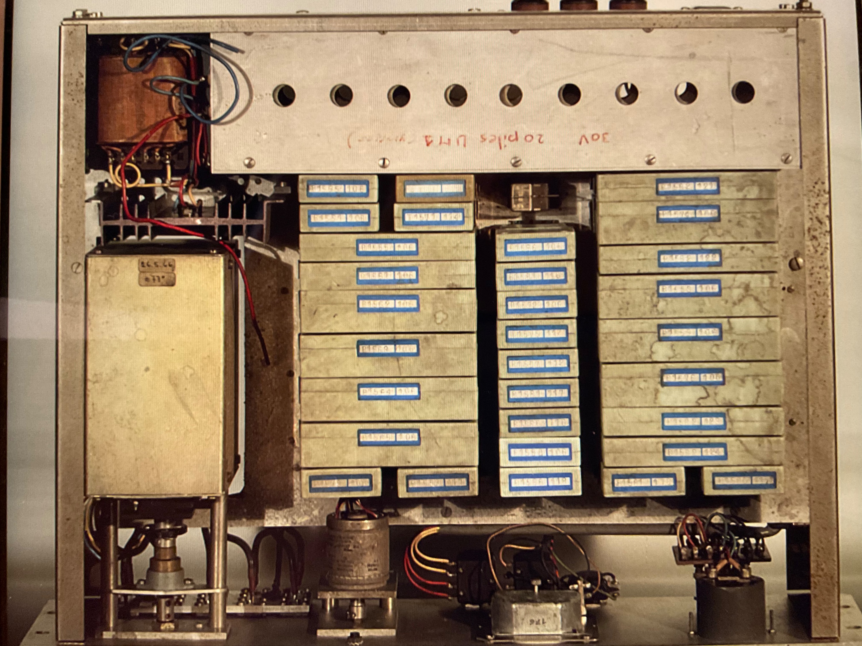 1964 wurde sie in einen 19 Zoll Einschub präsentiert. Alle Elektronikteile sind in Kunststoffboxen integriert und gekapselt und gegen jegliche Zugriffe voll isoliert!. Die Uhr verfügt über keine Röhren mehr, und ist voll transistorisiert.