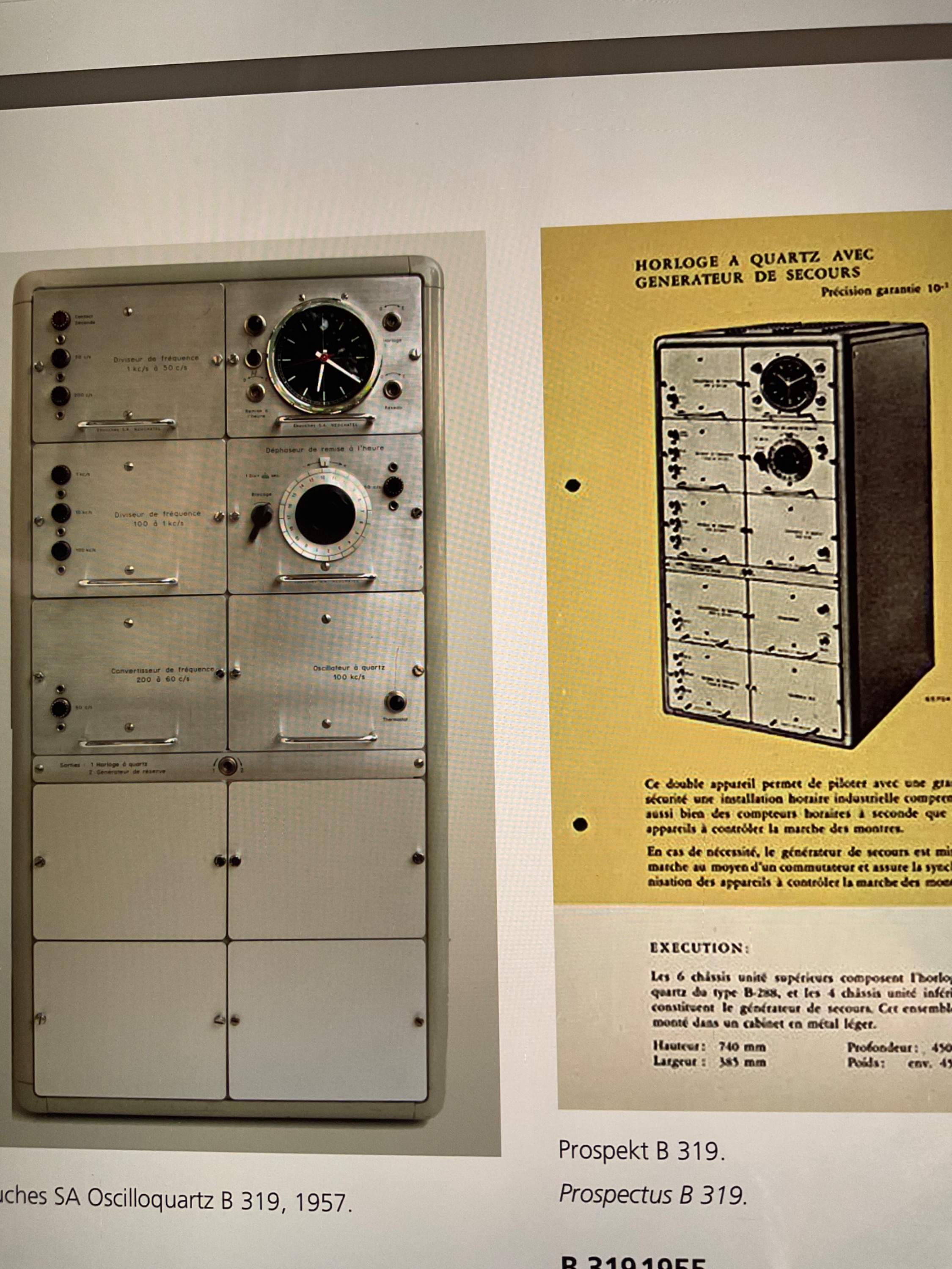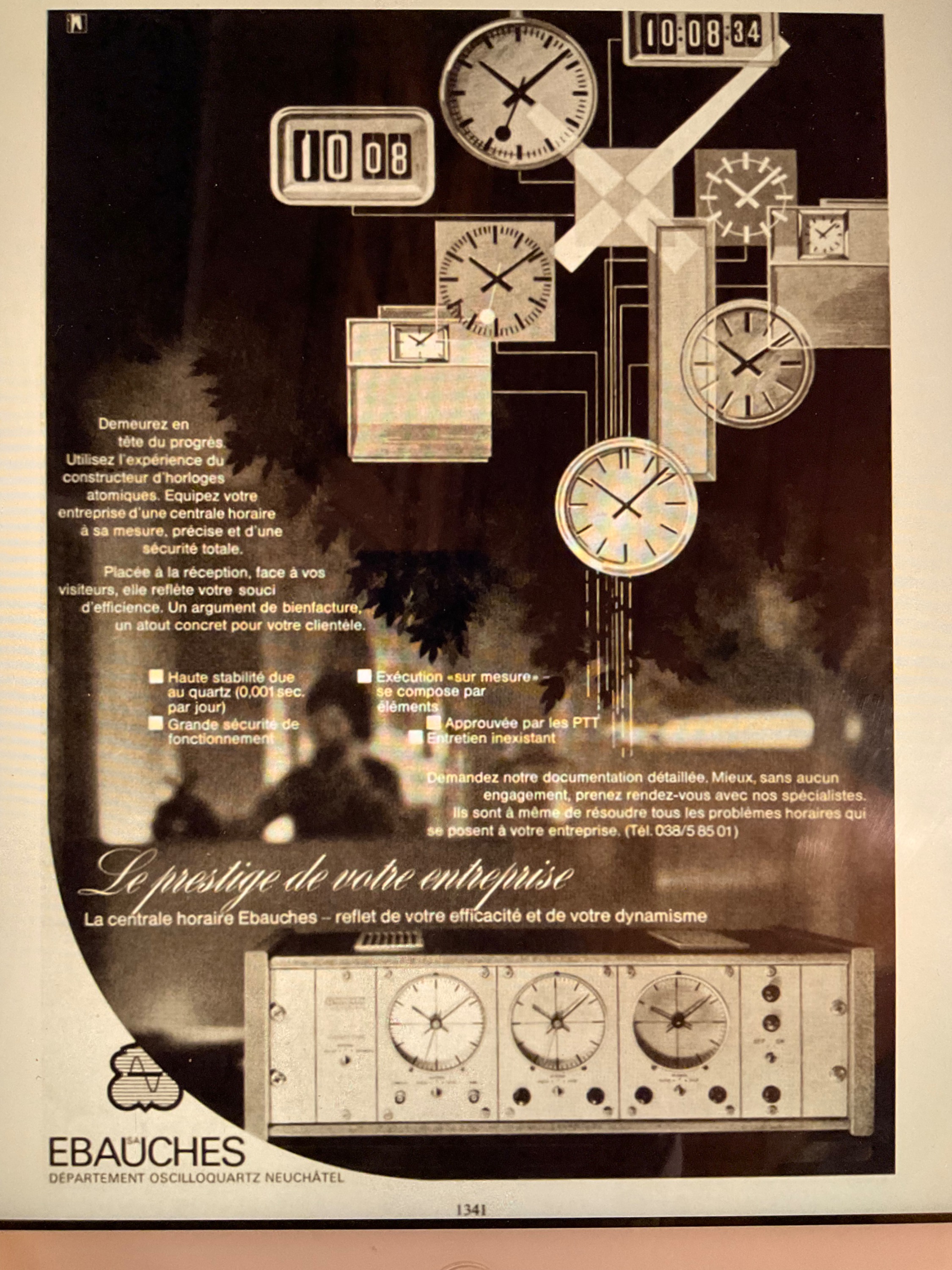 Ab 1969 warb Oscilloquartz für die Zeitdienstanlage B1383 in der Fachpresse. es handelte sich um eine Mutteruhr mit drei Zeitbasen.
