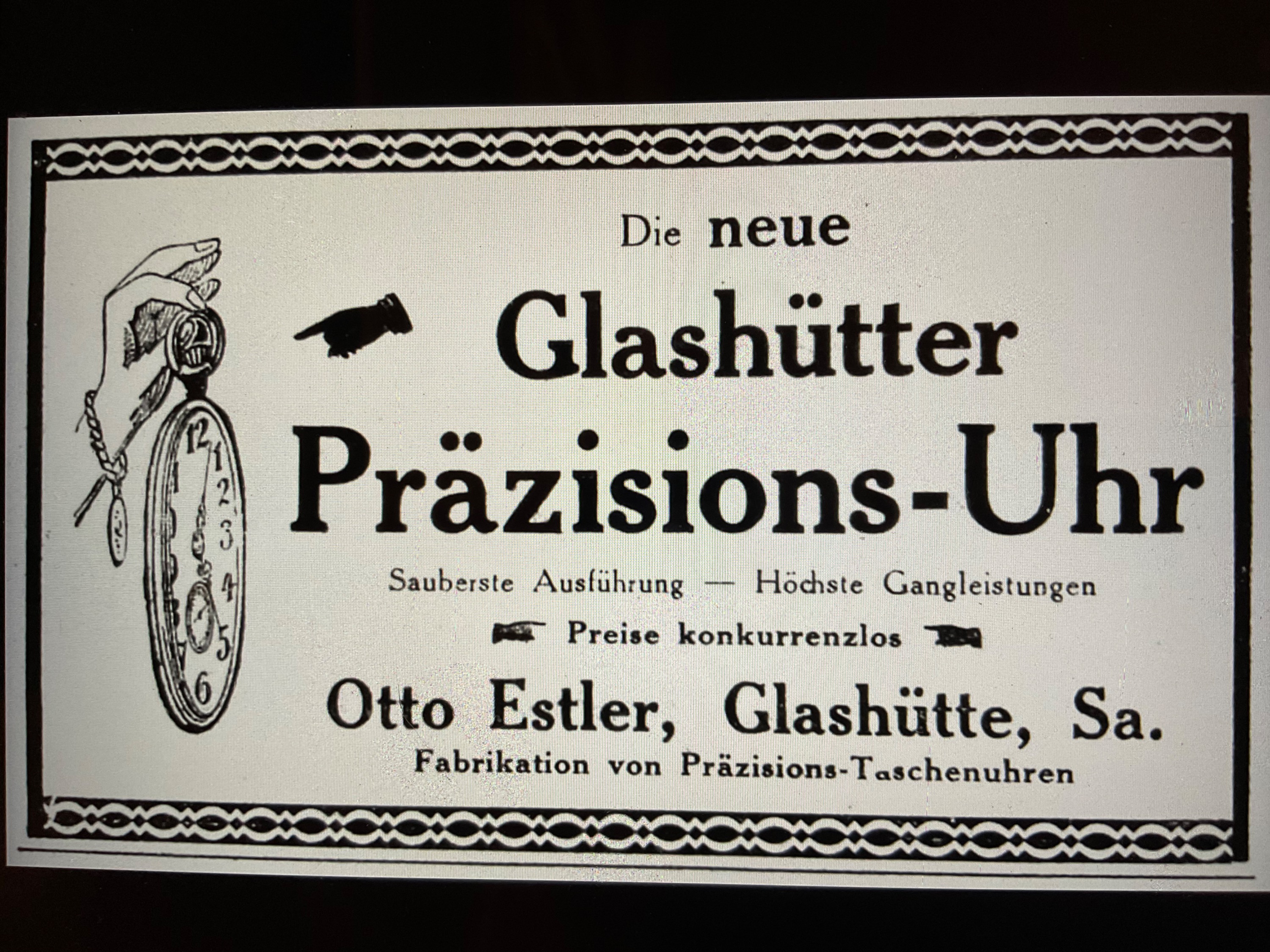 Präzisions-Taschenuhr-Fabrik Otto Estler Glashütte i. Sa. 1919 bis 1924
