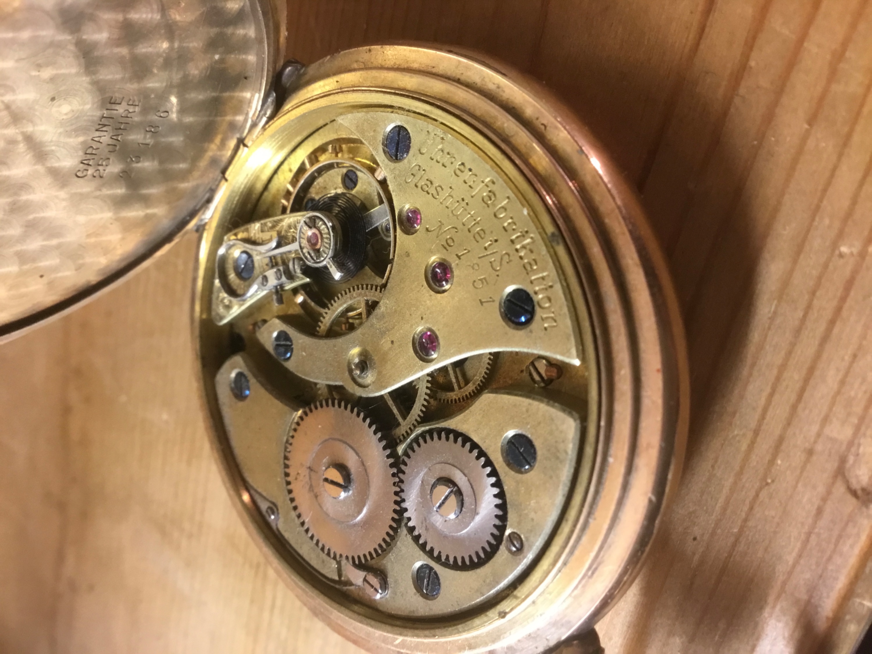 Ich war damals in Bezug auf Taschenuhren so aufgeklärt, wie eine Jungfrau, die nach den ersten Rendezvous mit einen Kind nach Hause kommt! (Ob es das heute in der Realität noch gibt?) Außerdem hatte mich das Werk so begeistert, dass ich überhaupt nicht mehr an das Gehäuse dachte. Die Reparaturkosten belaufen sich auf über dreihundert Euro, das ist mir denn zuviel!