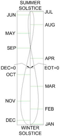 Wäre die Sonne immer wirklich um 12:00 im Süden, wäre es keine Acht, sondern ein gerader vertikaler Strich von oben (Sommersonnenwende, Sonne hoch) nach unten (Winter-Sonnenwende, Sonne tief).