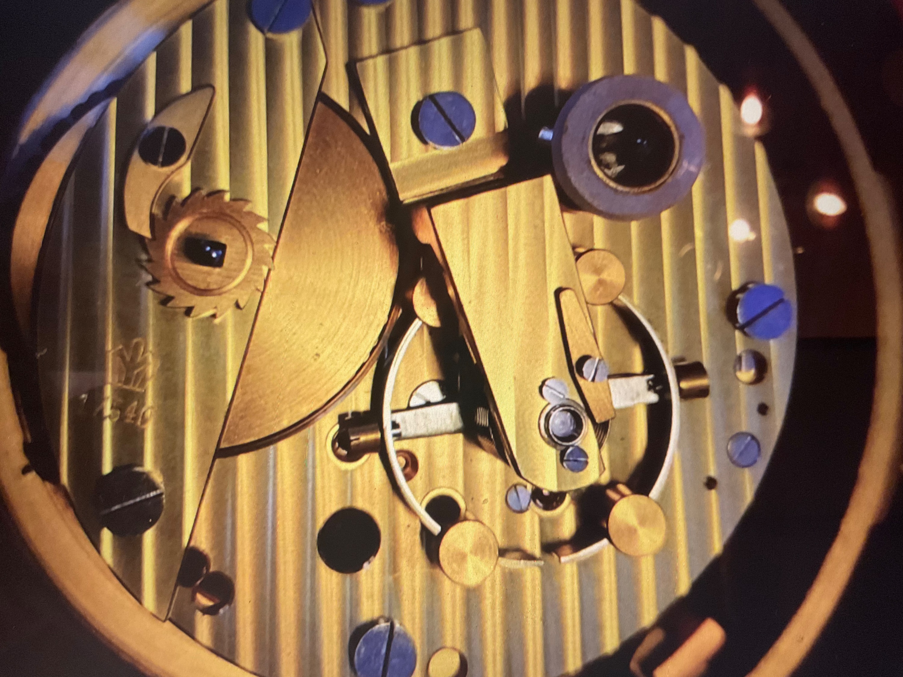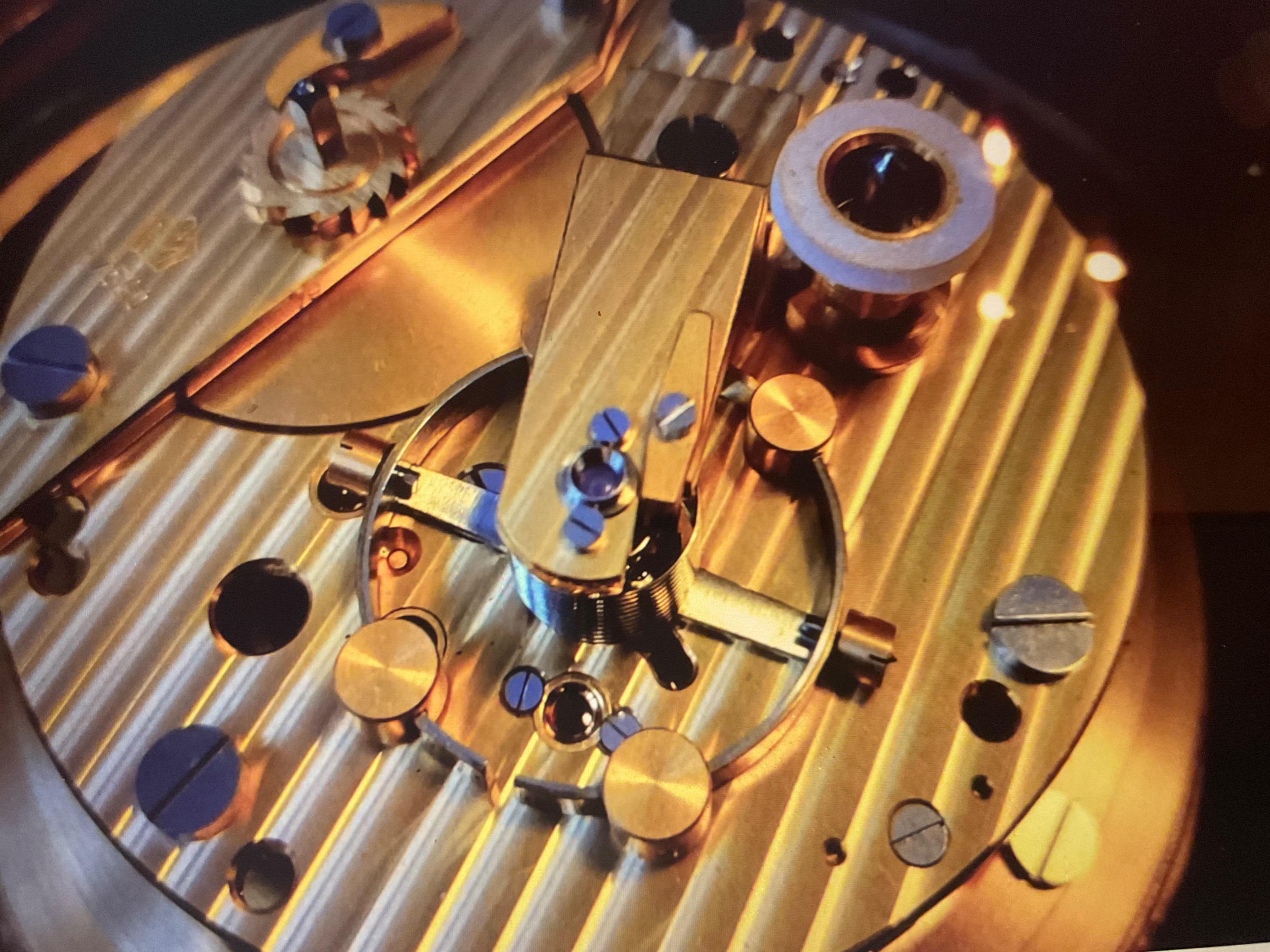 Hier ist sehr schön die zylindrische Unruhefeder aus Palladium zu ersehen.
