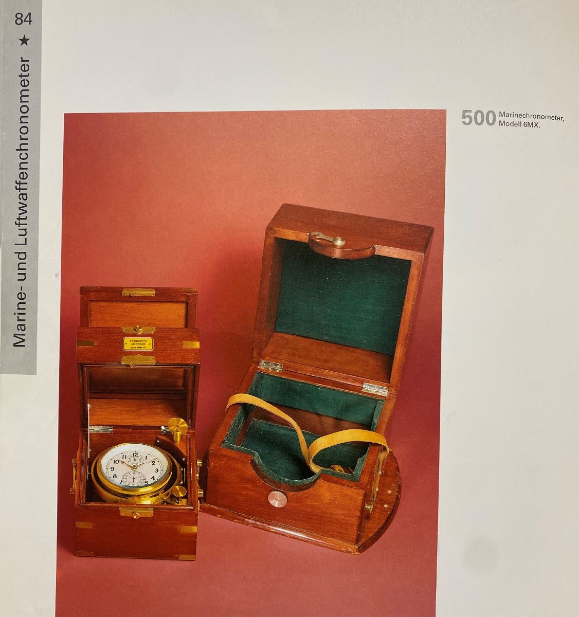 Marine-Chronometer werden wie folgt definiert:„Ein Schiffs-Chronometer ist ein kardanisch aufgehängter tragbarer Zeitmesser von hierfür üblicher Größe, der mit Chronometerhemmung oder freier Ankerhemmung ausgerüstet, und bei vorgeschriebenen Temperaturen auf höchste Gangleistung feingestellt ist. Die Dauer einer Vollschwingung der Unruh hat 0,5 Sekunden zu betragen. Die Laufzeit soll mindestens 56 Stunden sein“.Das „Marine-Chronometer" - ist nach oben ablesbar. Es hat eine Bodenfläche von 185 x 185 mm, weil ein solcher Platz im Kartentisch auf der Brücke der Schiffe vorgesehen ist. Der Sekundenzeiger macht Halb-sekundensprünge, weil das in Verbindung mit einem Sekunden-Zeitzeichen die genaue Bestimmung von Zehntelsekunden garantiert. Das Chronometer hat ein Auf- und Abwerk und eine Laufzeit von 56 Stunden.