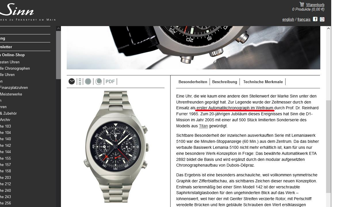 Wieso Sinn sich damit rühmt, habe ich nicht verstanden, eigentlich sollte es bekannt sein, daß sie nicht die Ersten mit so einer Uhr im All waren.