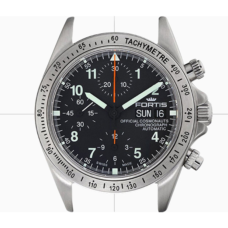 Die erste Uhr, die von Roskosmos für Weltraummissionen eingesetzt wurde, war der Kosmonauten-Chronograph von Fortis.Ein 38-Millimeter-Chronograph mit schwarzem Zifferblatt und kontrastreichen, mit Tritium beschichteten Ziffern, Stunden- und Minutenzeigern