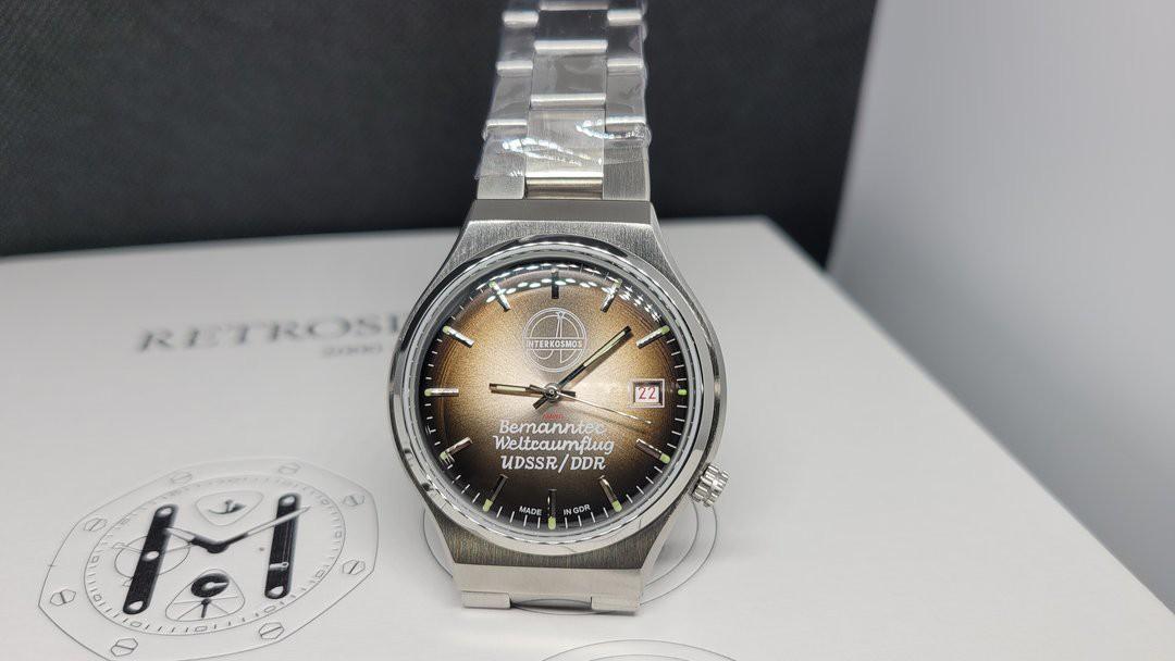Kratzfestes Saphirglas, die Interkosmos-Gravur auf der Rückseite sowie ein Schweizer Ronda 505-Quarzwerk sind weitere Kennzeichen des Modells, welches im thüringischen Ruhla gefertigt wird.