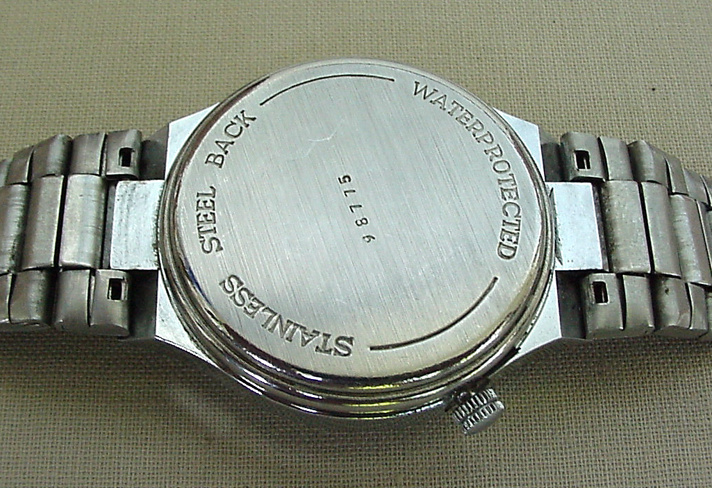 Hinten hat die Uhr einen Schraubdeckel mit einer Widmungsgravur, die u.a. den Geburts- und Todestag von S. Jähn enthält. Der Schraubdeckel scheint zu klein zu sein, als dass das damals in 1978 verwendete Quarzwerk UMF 28-40 überhaupt in die Uhr passt. Einen solchen Rückendeckel findet man sonst nirgends im Netz, beide Uhren aus 1) und 2) haben andere Rückendeckel, nur bei diesem dubiosen Angebot scheint es den zu geben.