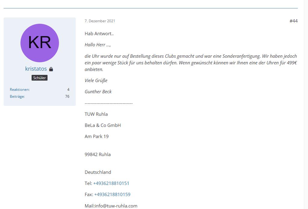 Sehr interessant! Klar, dann gibt es diese Uhr aus der Caroussel-Anzeige wirklich von TUW Ruhla. Vom Aussehen her eine genaue Kopie. Für die Hardcore-Ruhla-Sammler müsste die eigentlich interessant sein.