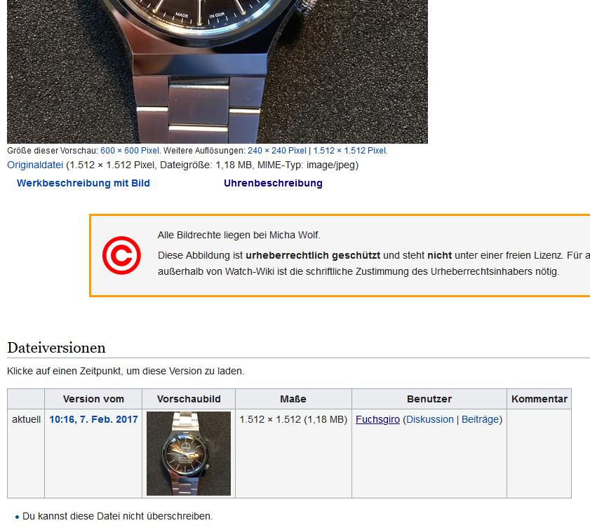 Die Bilder dieser extrem fragwürdigen Uhr sind als Referenz ungeeignet. Vor dem Angebot kann man nur warnen.