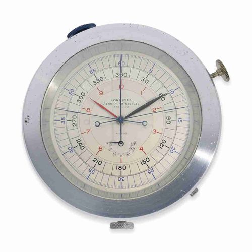 Longines Siderograph um 1940, rundes Aluminiumgehäuse für Bordmontage, gravierte Lünette mit Sekunden, Minuten und Gradeinteilung.