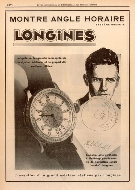 Die Werbung von Longines für die Fliegeruhr, mit den Bildnis von Lindbergh